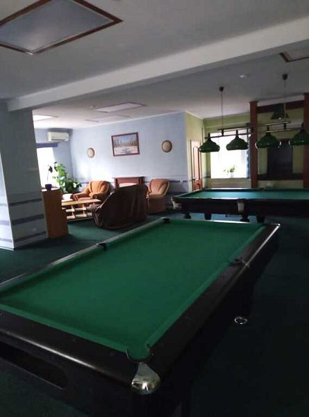 Есть бильярд 9-футовый (до 4 человек) и бильярд 9-футовый (до 4 человек).