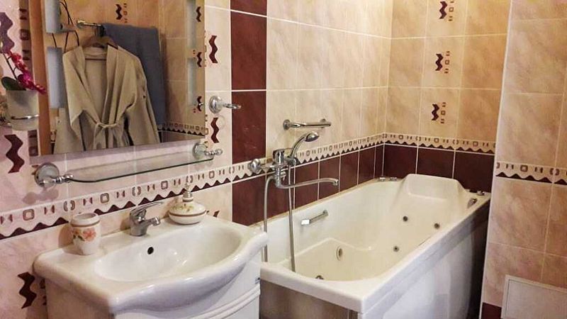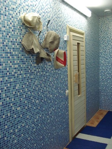 Здесь есть все, что нужно для полного счастья: чистая, уютная парная, маленький бассейн с водопадом и комната отдыха.