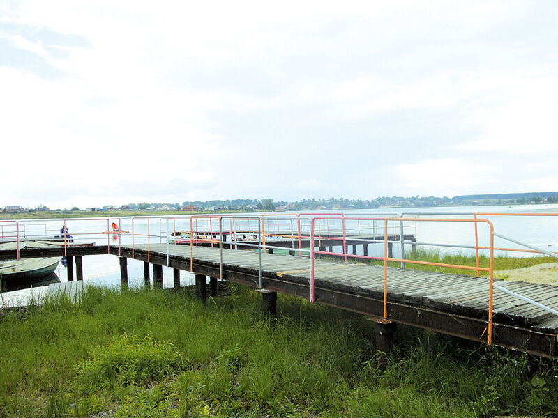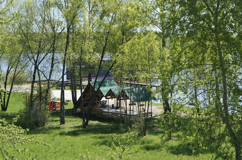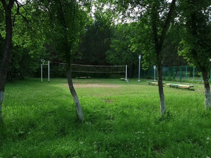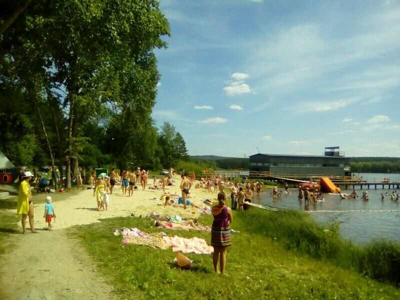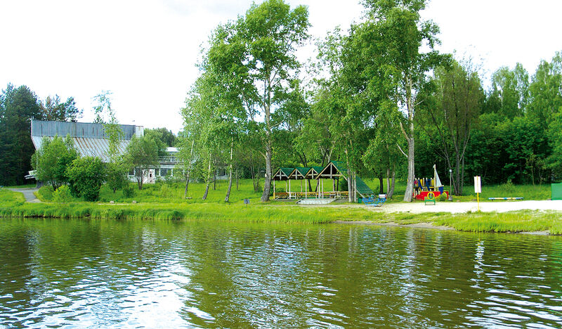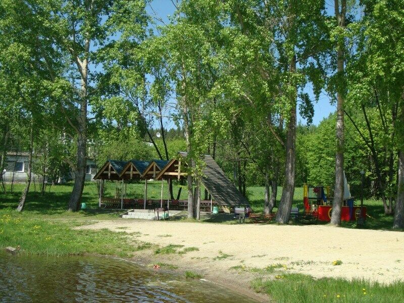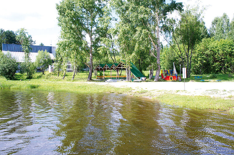 Всего в 50 метрах от корпуса расположен собственный песчаный пляж на берегу пруда. На побережье установлены кабинки для переодевания, а в летний период работает небольшое кафе.