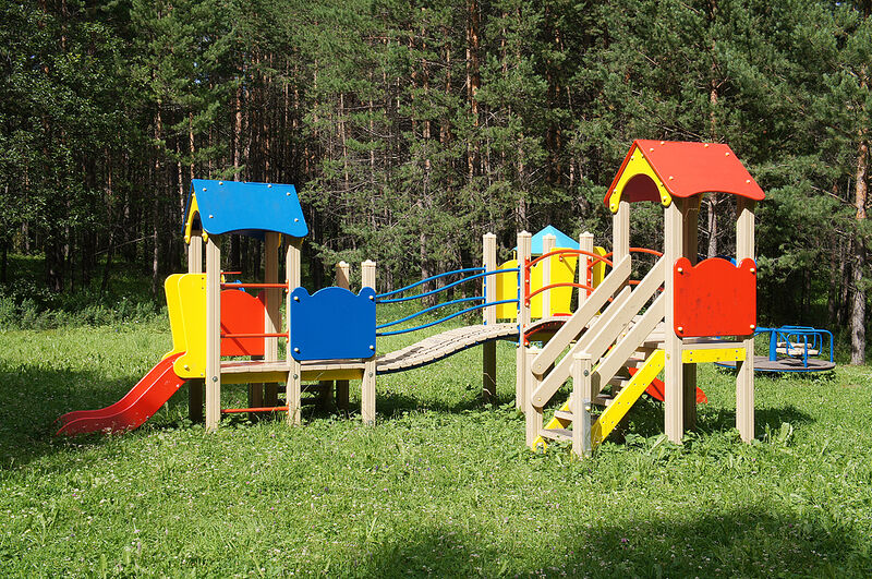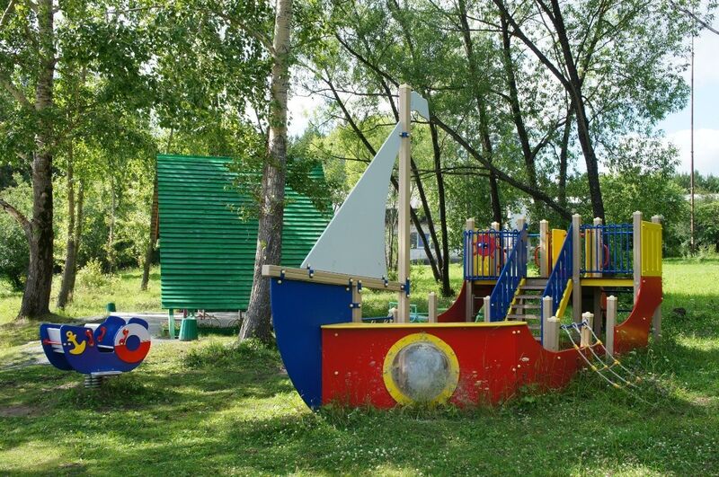 На базе отдыха созданы комфортные условия отдыха для детей. Для юных гостей установлена площадка с горками и качелями, работает игровая комната.