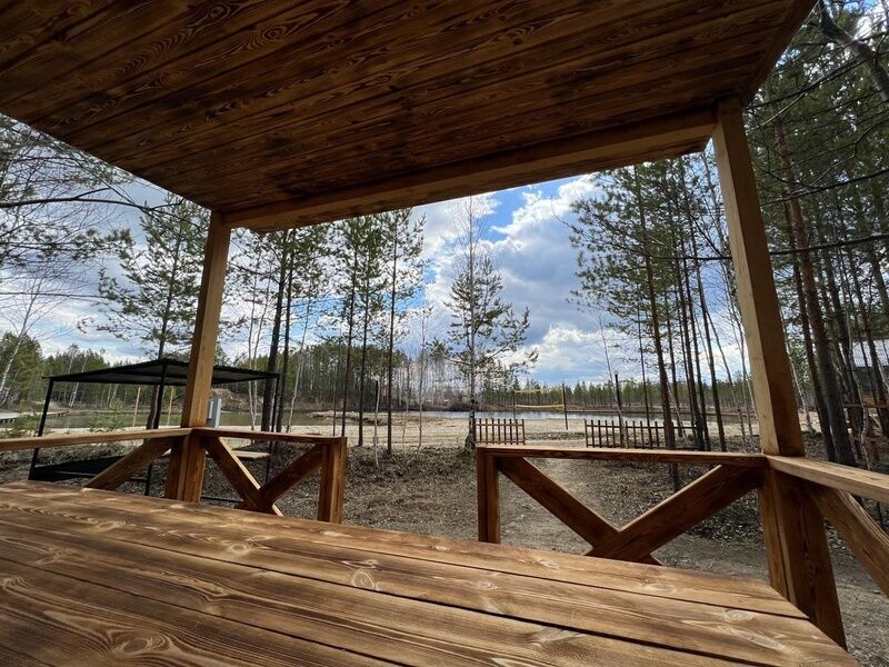 Территория, инфраструктура и удобстваБеседкиПлатно (Информация от 01 апреля 2024) Уютные деревянные беседки расположены на берегу озера Терсутское в сосновом лесу. Каждая имеет зону барбекю для приготовления шашлыка. Предлагаются в аренду беседки для проведения Вашего праздника, простого пикника или перекуса и отдыха после экскурсии по тропе «Бажовские сказы». Аренда от 2-х часов.       БеседкиОписаниеУютные деревянные беседки расположены на берегу озера Терсутское в сосновом лесу. Каждая имеет зону барбекю для приготовления шашлыка. Предлагаются в аренду беседки для проведения Вашего праздника, простого пикника или перекуса и отдыха после экскурсии по тропе «Бажовские сказы». Аренда от 2-х часов. СтоимостьОт 500 ₽/часИнформация от 01 апреля 2024 Открытый бассейнОткрытый круглогодичный бассейн инфинити, где открывается шикарный вид на озеро Терутское. Бассейн с зоной отдыха и летней пляжной террасой позволит расслабиться после знойной летней прогулки и согреться в зимнюю стужу. В бассейне есть гейзер с противотоком и гидромассажная аква-зона.     Открытый бассейнОписаниеТип бассейна: открытый бассейнВода в бассейне: подогреваемый бассейнПлощадь: 40 м²Глубина: 150 смОткрытый круглогодичный бассейн инфинити, где открывается шикарный вид на озеро Терутское. Бассейн с зоной отдыха и летней пляжной террасой позволит расслабиться после знойной летней прогулки и согреться в зимнюю стужу. В бассейне есть гейзер с противотоком и гидромассажная аква-зона.