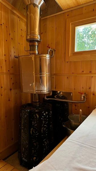Сибирский банный чан. Вода, прогретая теплом дров, создает атмосферу истинного уюта и спокойствия. Банный чан - это не только способ согреться, но и настоящий источник зарядки энергией. Уникальное сочетание тепла и расслабления, подарит незабываемые моменты уединения и покоя. Помимо приятных ощущений, банный чан благотворно влияет на организм. Он способствует расслаблению мышц, улучшает кровообращение и помогает снять усталость. И это всё в атмосфере чистого воздуха и звуков природы!