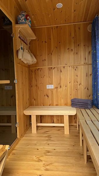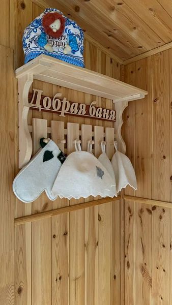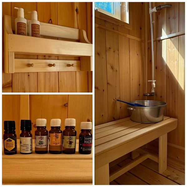 Для удобства и комфорта в нашей бане Вас ждут: банные шапочки и рукавицы, свежие простыни и мягкие полотенца, ароматические масла, шампунь и бальзам для волос, гель для душа, блестящие тазы и ковши. Также есть дополнительная возможность заказать березовые веники и банные халаты.