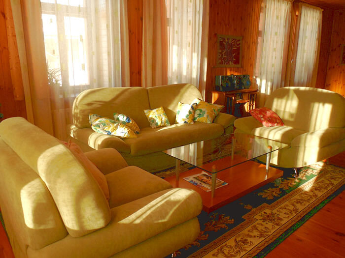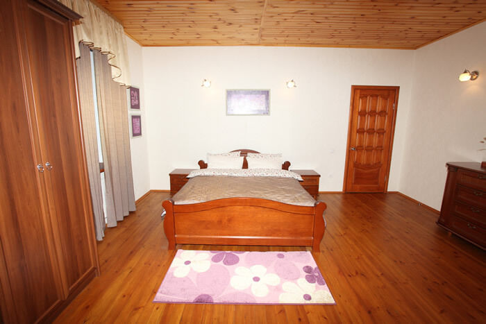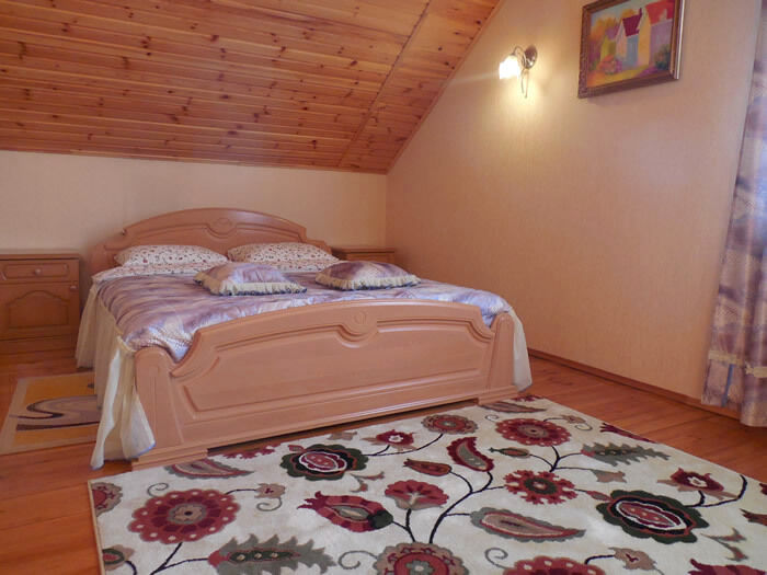 Для гостей подготовлен комфортабельный двухэтажный коттедж, в котором имеется уютный зал с камином и бильярдным столом, 3 больших спальни, кухня с необходимой бытовой техникой и посудой, холл, балкон и санузел с душевой. Максимальная вместимость коттеджа 8 человек. На облагороженной территории имеется замечательная сауна, беседка с мангалом и парковка для автомобилей. Благодаря высокой степени комфорта, приятному интерьеру и чистоте, коттедж оставляет хорошие впечатления всем гостям.