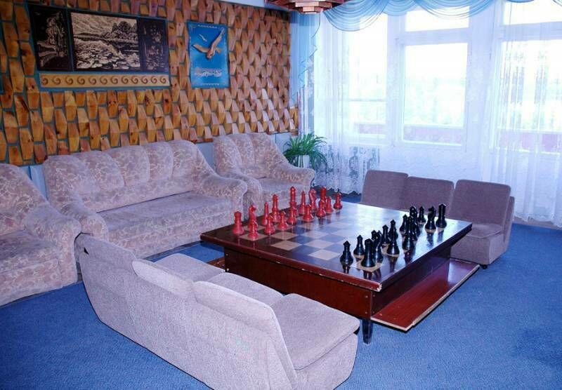 Когда заходишь в фойе санатория - как будь-то срабатывает машина времени и ты, в хорошем смысле, переносишься назад в 80-е...90-е. Запах столовой из пионер-лагеря, ковровые дорожки в коридоре, резные панно на стенах. Мне очень это понравилось.
