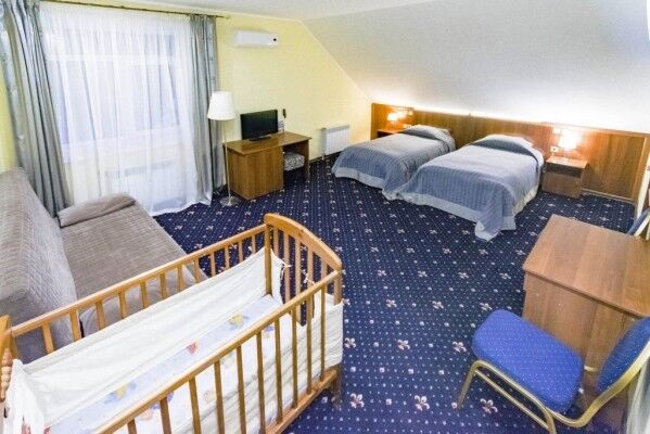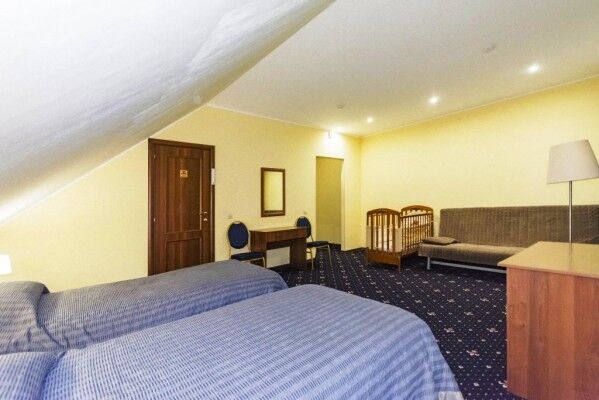 Наш семейный номер станет для вас идеальным домом на время отпуска с любимыми и близкими. Комфортабельный номер c двумя односпальными кроватями и диваном. Здесь есть отдельная ванная комната с душевой кабиной и санузлом, кондиционер, холодильник, полотенца, набор принадлежностей для душа, ТВ и Wi-Fi.