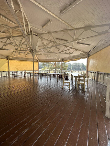 На территории есть пять одинаковых коттеджей, каждый рассчитан на десять-двенадцать человек. В каждом коттедже есть оборудованная кухня, холодильник, микроволновая печь, посуда, столовые приборы, два двуспальных дивана, восемь односпальных кроватей, и санузел с душем на каждом этаже. А также доступны два сафари-тента для проживания.