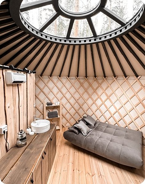 В просторном двухэтажном доме площадью 180 кв.м. с комфортом разместятся до 10 гостей. Изысканная терраса с обеденной зоной и зоной отдыха, а также гриль-площадка создают идеальные условия для семейных ужинов и посиделок с друзьями. На втором этаже дома — уникальная спальня с ванной комнатой, идеальная для романтического отдыха. Завершают гармоничную картину загородного отдыха уютные юрты для двоих, где можно насладиться тишиной и красотой окружающей природы.