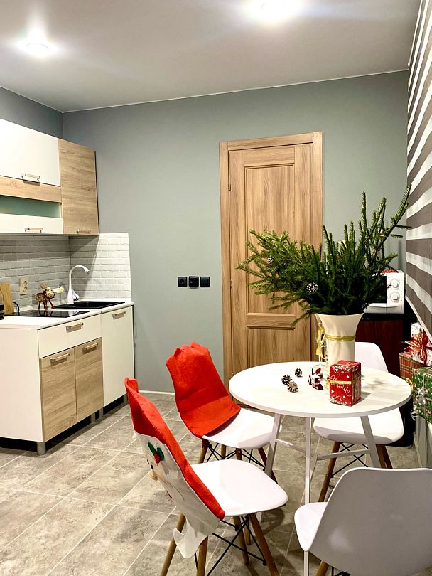 Кухня, оснащённая всем необходимым, позволит готовить любимые блюда.