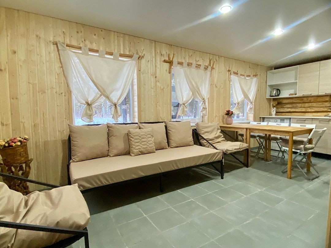 Уютный домик для компании до 10 человек станет идеальным местом для отдыха в окружении природы.