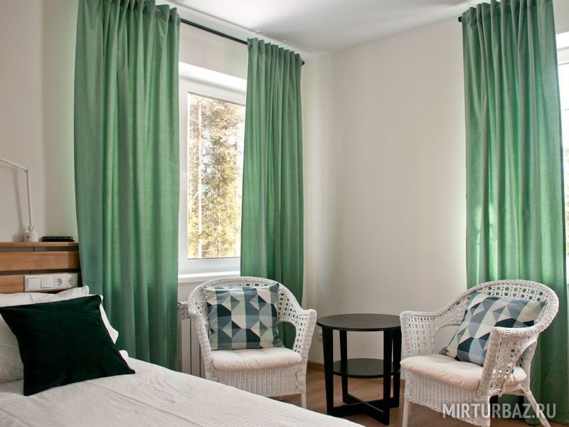 1-комнатный номер предназначен для проживания до 3 человек, есть возможность предоставления дополнительного места. Площадь номера 35 кв. м. Имеется терраса с видом на лесной массив.