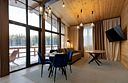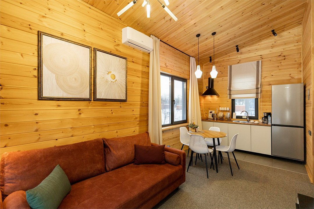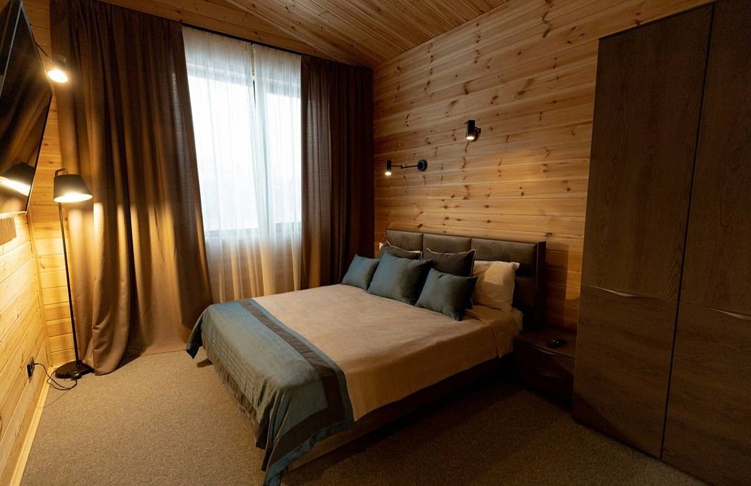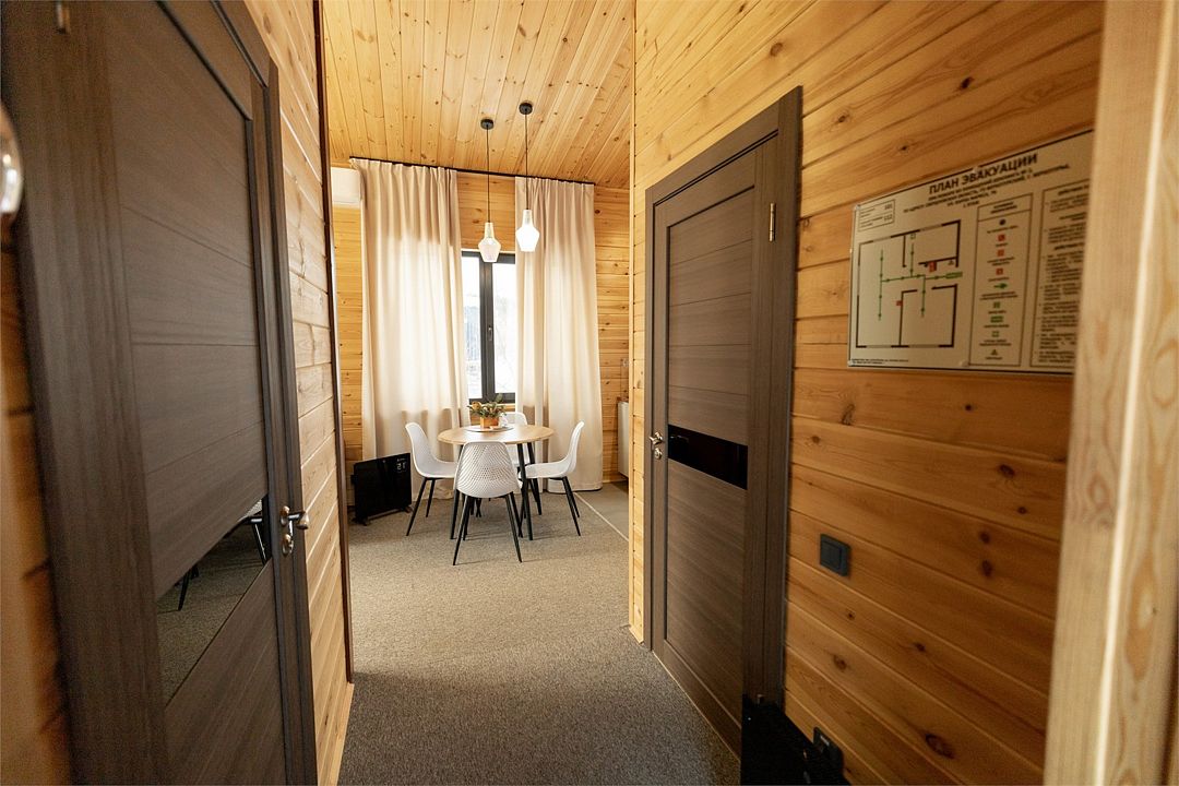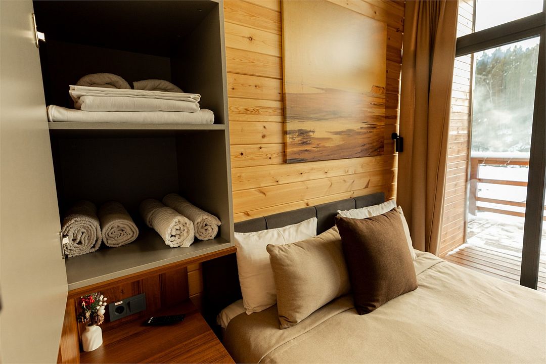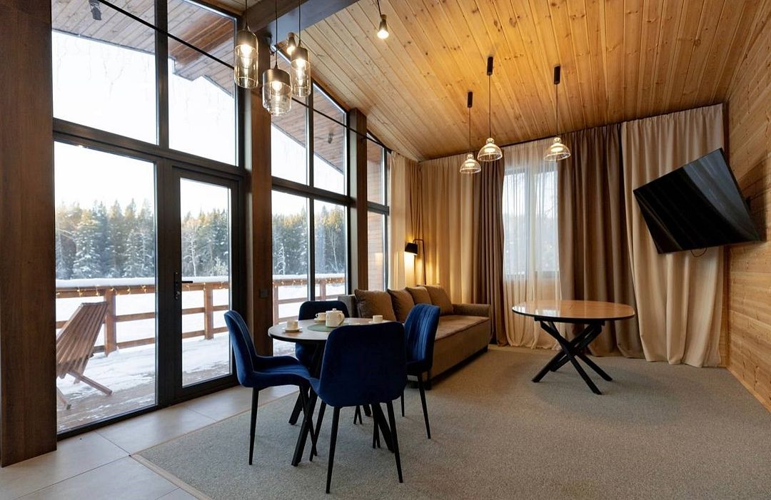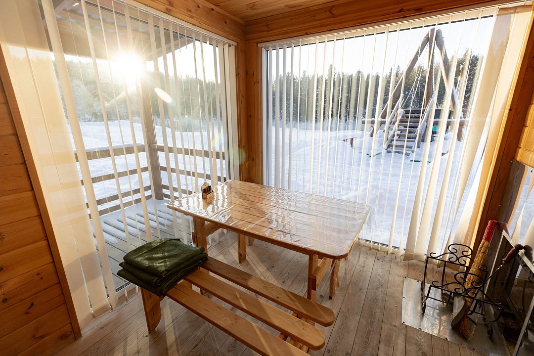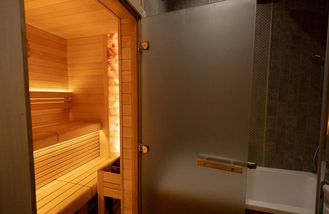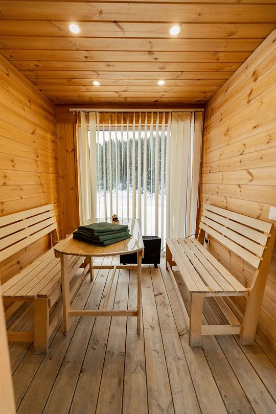 После освежающего купания в бассейне с панорамными окнами гости могут насладиться атмосферой можжевеловой сауны. Здесь, вдыхая свежий аромат хвои, вы сможете снять усталость и восстановить силы.