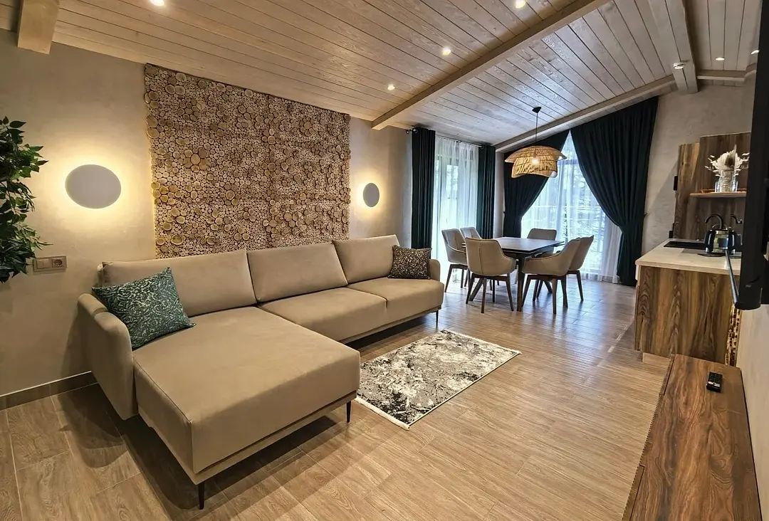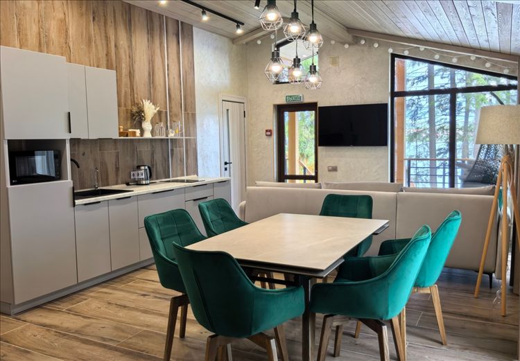 - просторная оборудованная кухня-гостиная с обеденным столом на 6 персон;