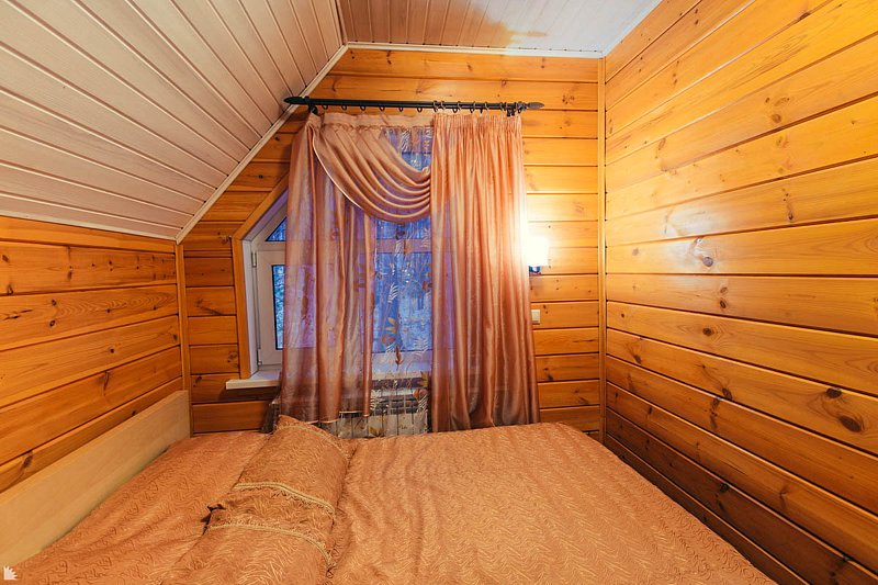 На втором этаже находятся 2 отдельные комнаты: одна с большой двуспальной кроватью, в другой — большая двуспальная кровать, а также раскладной двуспальный диван. Выход на балкон из одной из спален — с прекрасным видом на озеро Таватуй.