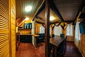 На первом этаже коттеджа расположены кухня, оборудованная всей необходимой техникой и посудой на 10 персон, диван и санузел с душем. Выход с первого этажа ведет на террасу с шикарным видом на озеро Таватуй.