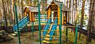 Уютная деревянная беседка с мангалом позволит вам отдохнуть на природе с максимальным комфортом. В беседке есть свет и вода, а также собственный камин, который создаст неповторимую атмосферу домашнего комфорта и уюта. Неподалеку от беседки расположена красивая кованая качель, спортивные и детские площадки. Отдыхая в беседке, вы можете попариться в настоящей русской бане (в стоимость аренды не входит).