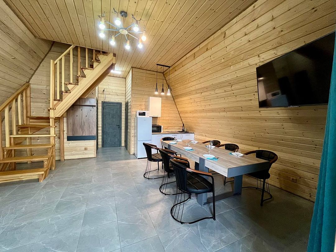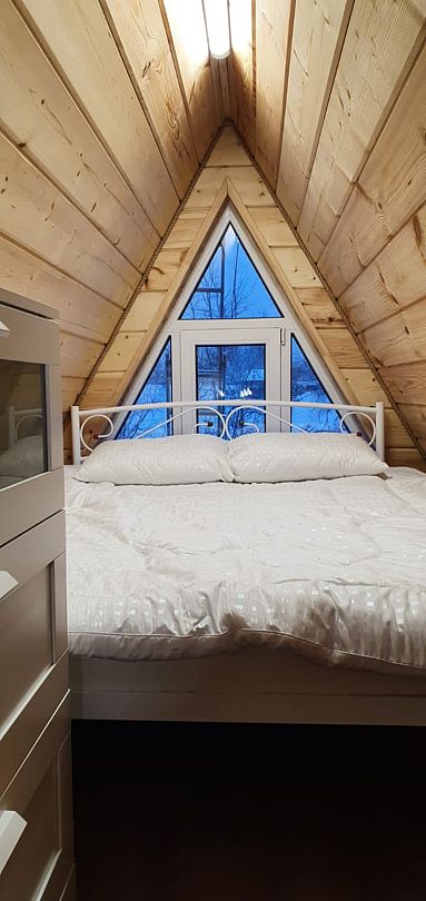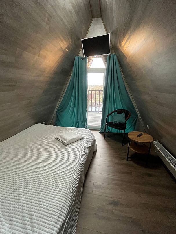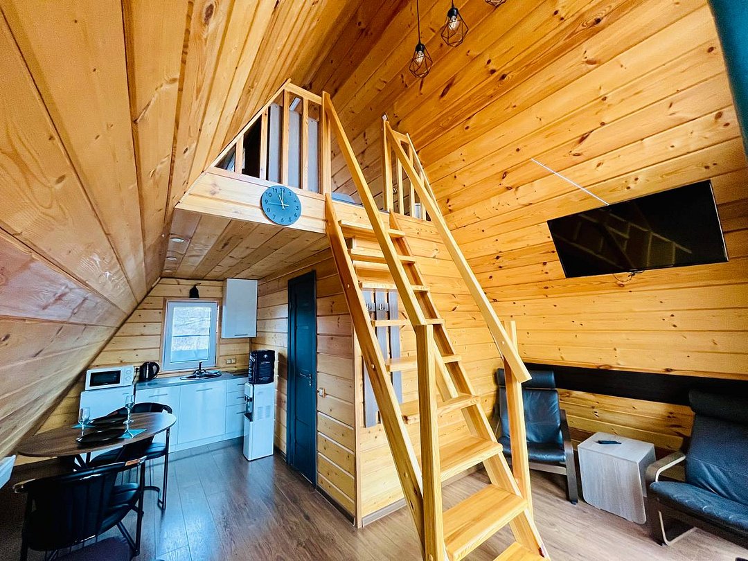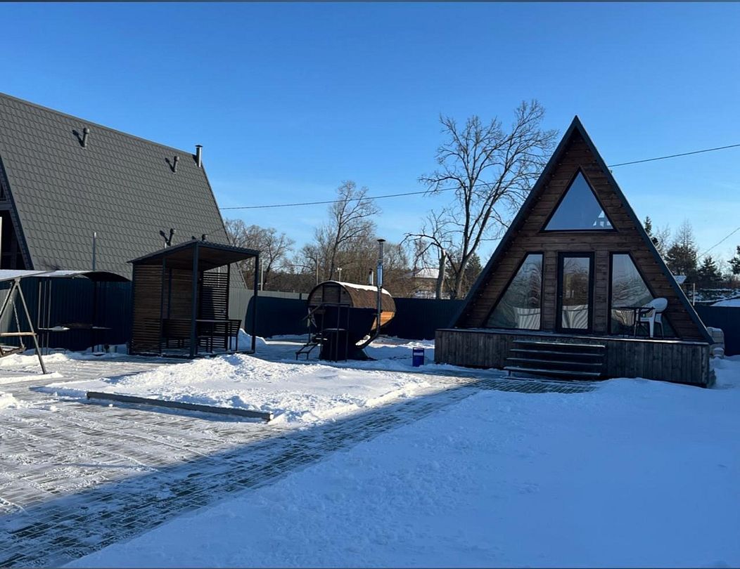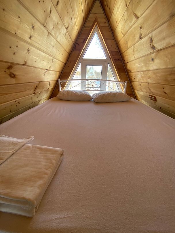 Здесь для аренды предлагаются два уютных дома типа А-frame — большой» и малый, каждый из которых оснащён всем необходимым для комфортного отдыха.