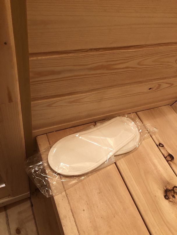Инфраструктура: тапочки, зона отдыха, простыни, обливное ведроПростынь и тапочки одноразовые прилагаются.