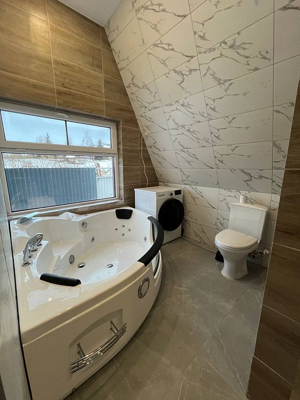 НедостаткиДобраться очень сложно, никаких указателей. Территория вокруг дома вся заросла травой по пояс, ландшафтный дизайн никакой, ужасные ступеньки входной лестницы, того и гляди обломятся, нет перил ни у лестницы, ни вокруг входа, что очень опасно, особенно ночью . Домик рассчитан максимум на 4 человек, но одно спальное место только для тех, у кого нет клаустрофобии под самой крышей, второе- диван, на котором невозможно спать по причине изношенности и жестокости. Есть кулер, нет воды, есть светильник- нет лампочки, есть часы- стоят.Пруд рядом, но он пожарный, к нему есть калитка, но за ней дебри из травы в рост человека ,через которые не пройти. Речка рядом, но спуск очищен только один, очень узкий, который занят местными, где они то купаются большими компаниями, то моют машины. При бронировании никто не предупредил, что необходим залог 3000₽, а если люди не готовы!