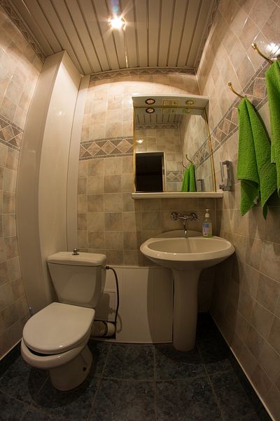 Номер блочной системы. В блоке расположено два номера, каждый на 2-3 места (полуторные кровати) с телевизором и холодильником. Общая прихожая, санузел, душ.