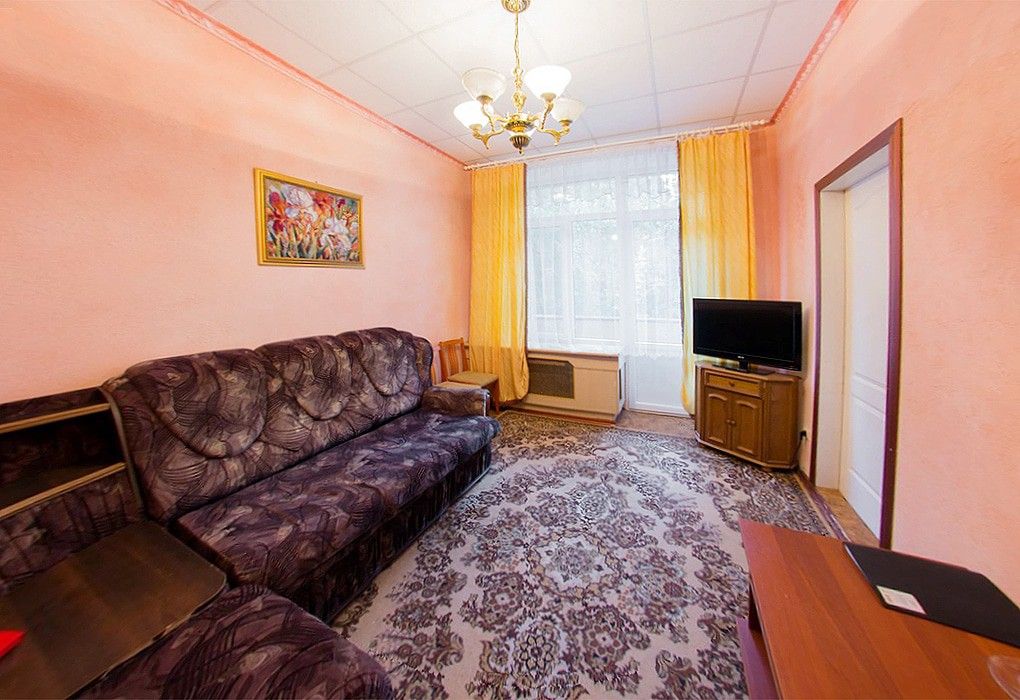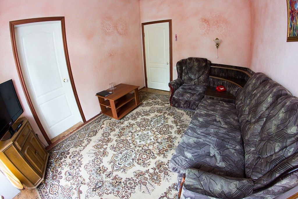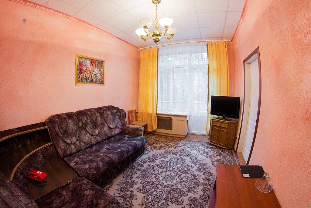 Комфортабельный двухкомнатный номер с раздельным санузлом, балконом и шкафом для одежды.