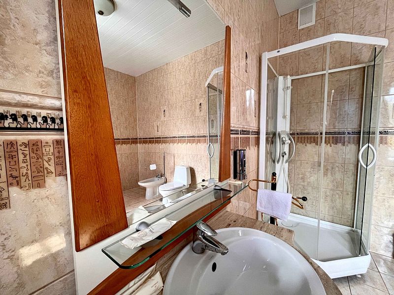 Номер рассчитан на двух персон — оснащен двуспальной кроватью.