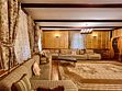 Спальные места: две двуспальные кровати, два двухместных дивана. Максимальная вместимость домика — восемь человек. Баня и бильярд предоставляются за отдельную плату.