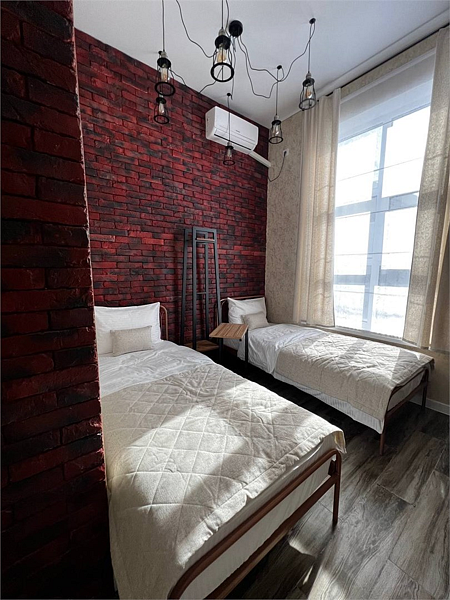 Двухместный номер категории «Стандарт», выполнен в стиле «Красный Лофт».