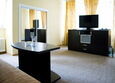 В гостиной: мягкая мебель, столик, TV, DVD, телефон, шкаф, холодильник с мини-баром.