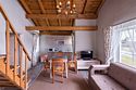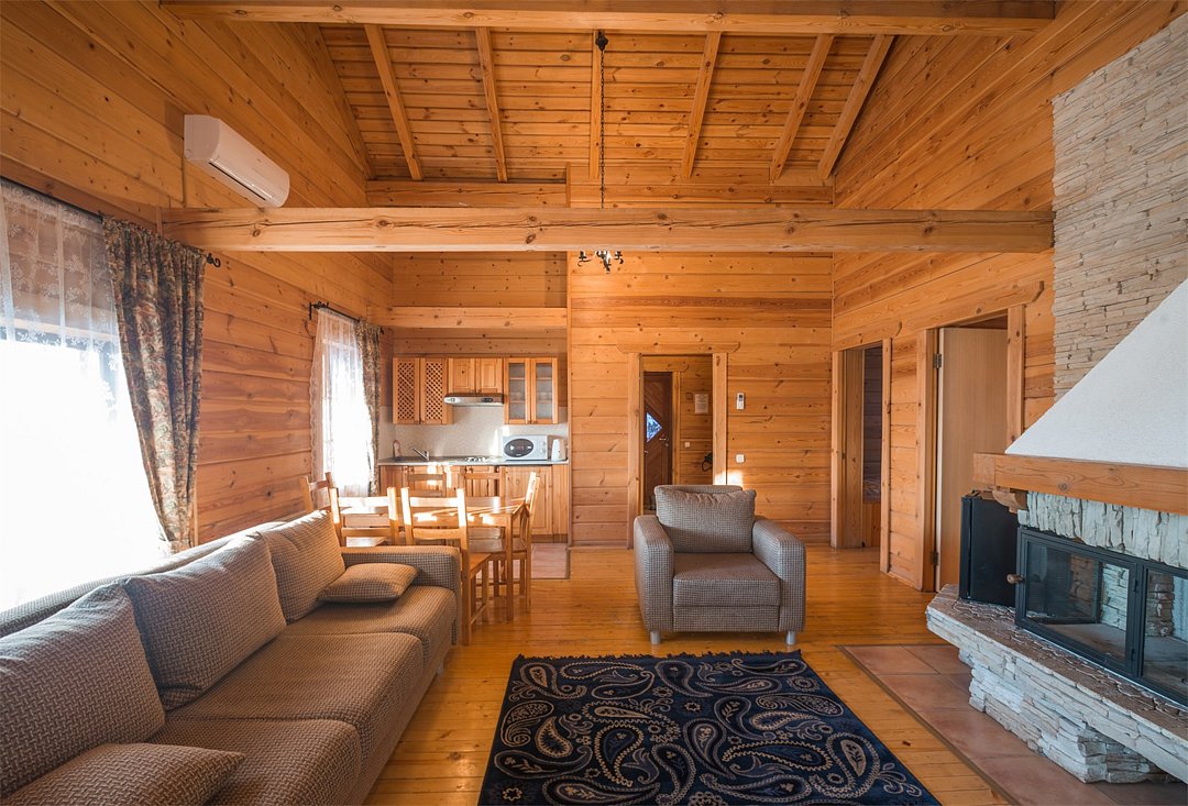 Двухэтажный дом с 3 спальнями, кухней и сауной. Находится в 4-х километрах от основной территории. Вам нужен личный автомобиль, чтобы добраться до горнолыжных трасс или кафе.