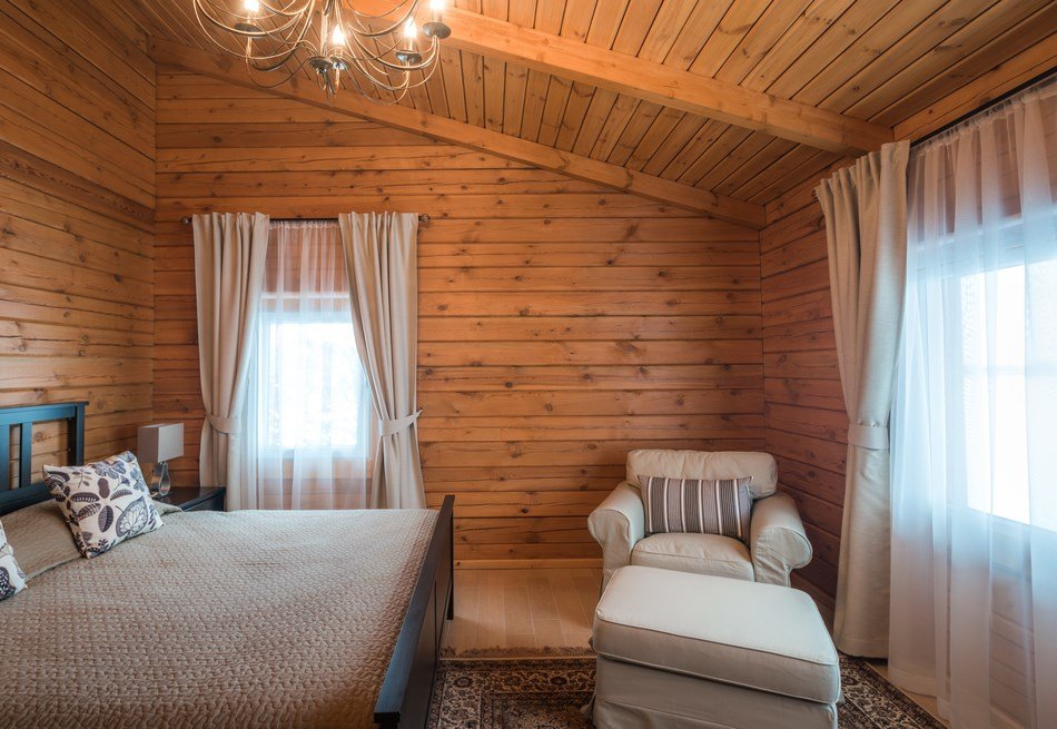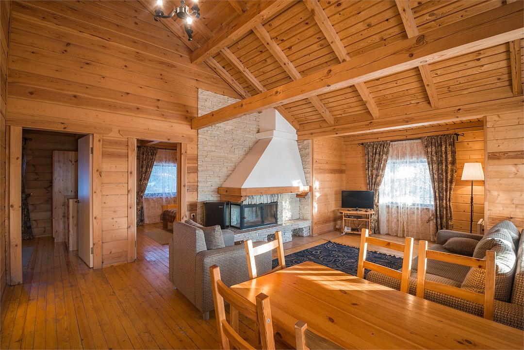 Дом с 1 спальней, кухней и сауной. Находится в 4-х километрах от основной территории. Вам нужен личный автомобиль, чтобы добраться до горнолыжных трасс или кафе.