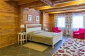 Деревянный дом из соснового бруса с собственной сауной. Идеально подходит для большой семьи или компании друзей из 4-х человек. Расположен на верхнем плато, рядом с горнолыжным склоном.