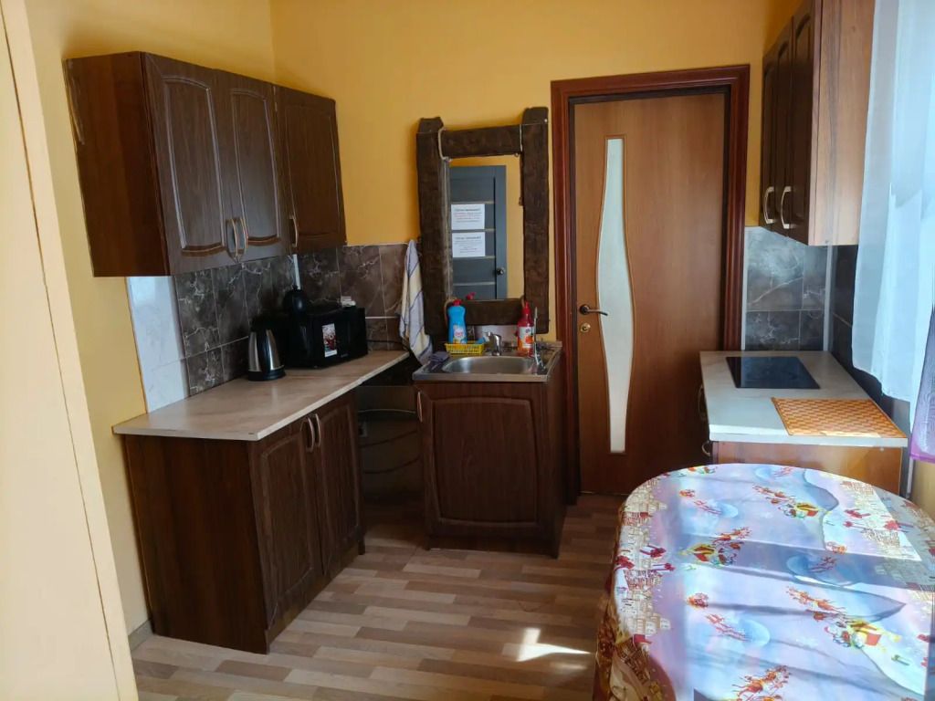Первый этаж — столовая совмещенная с кухней, санузел. Второй этаж — 3 спальные комнаты. Кухня оборудована всеми принадлежностями, имеется холодильник и микроволновая печь, а также газовая плита. При доме имеется отдельная мангальная зона.