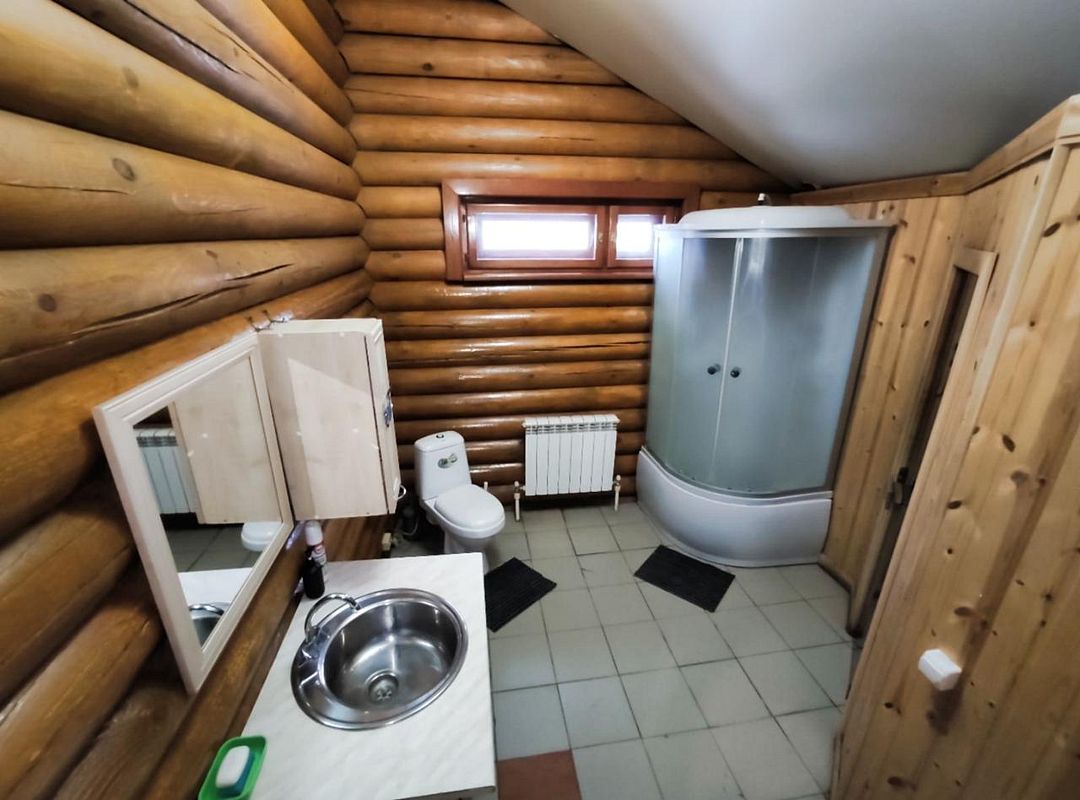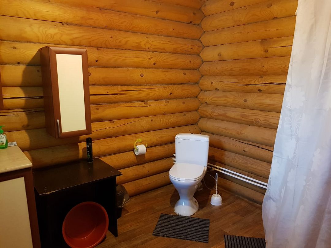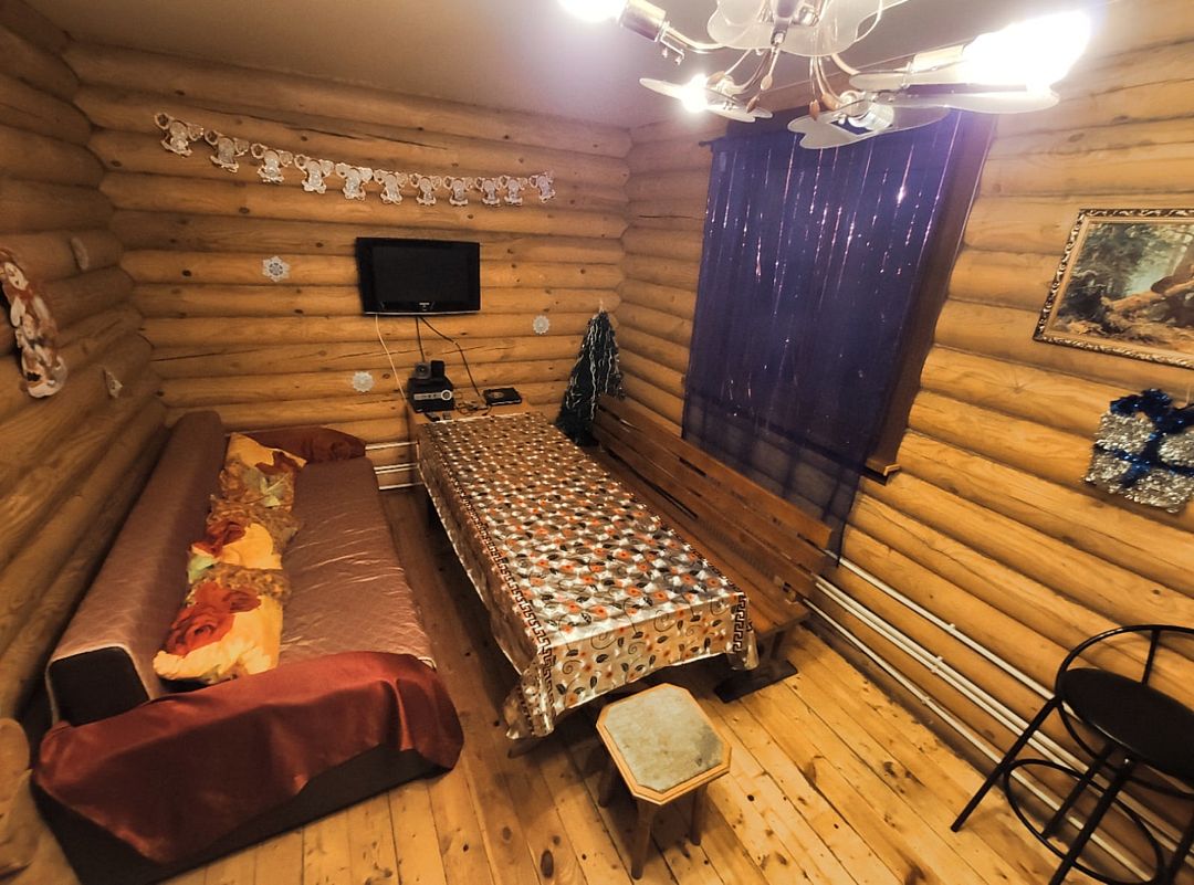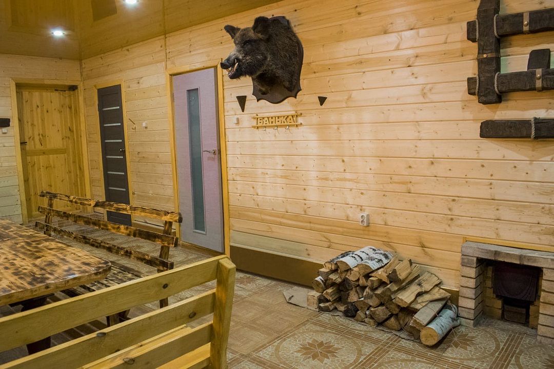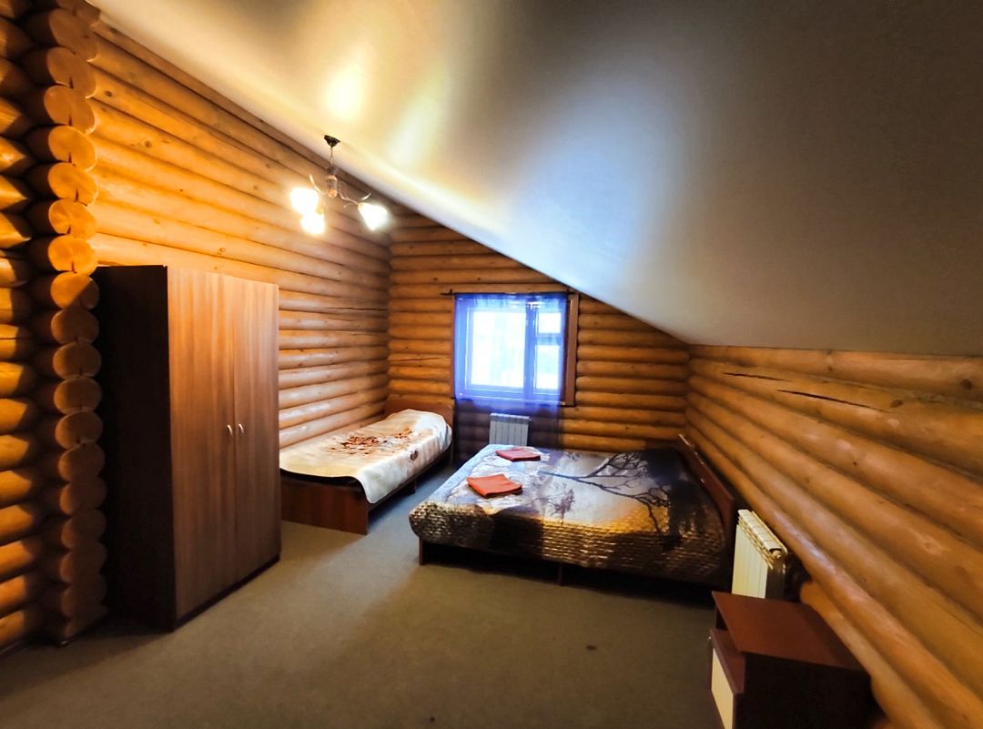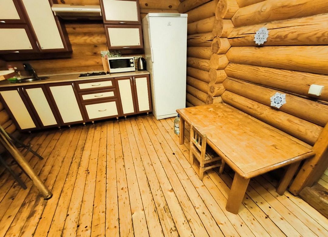 Двухэтажный деревянный сруб. За дополнительную плату можно арендовать баню или банный комплекс (2 часа минимум).