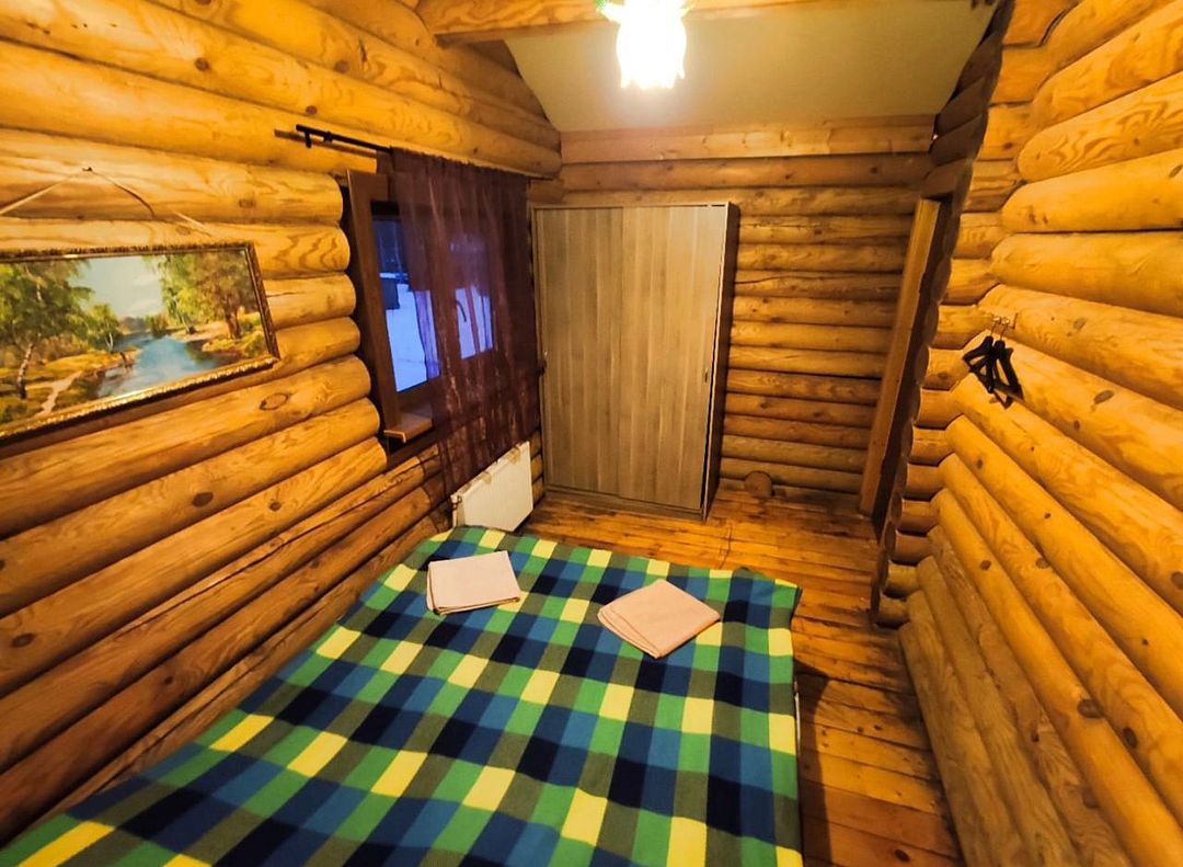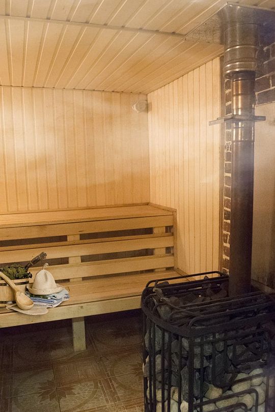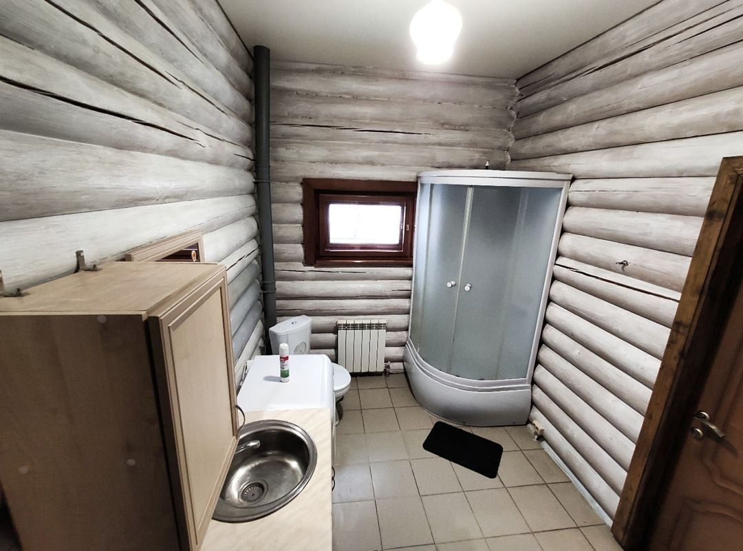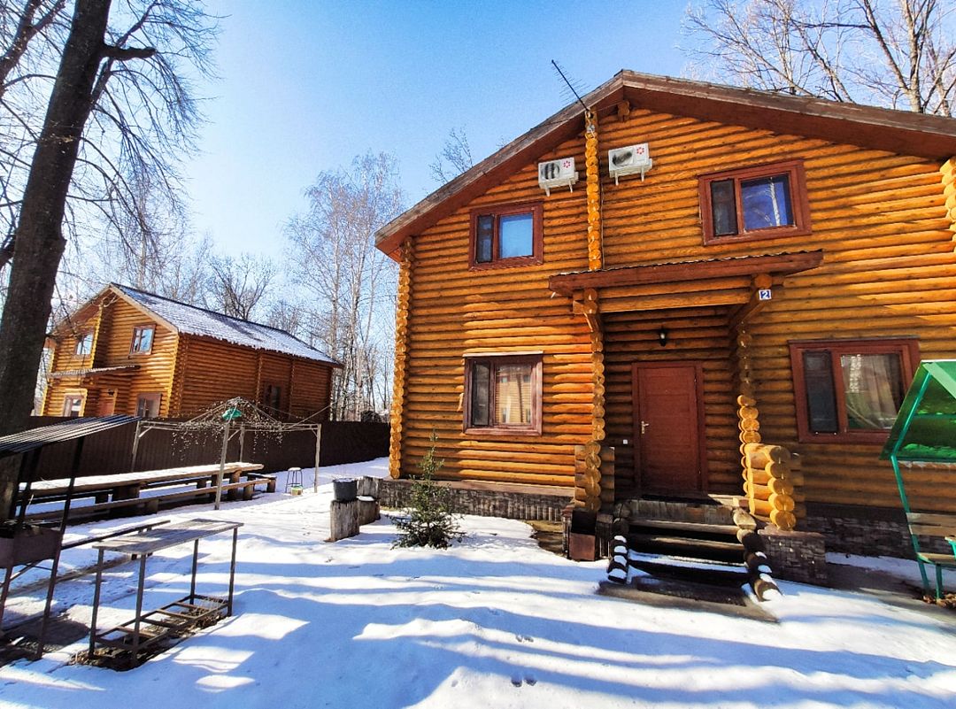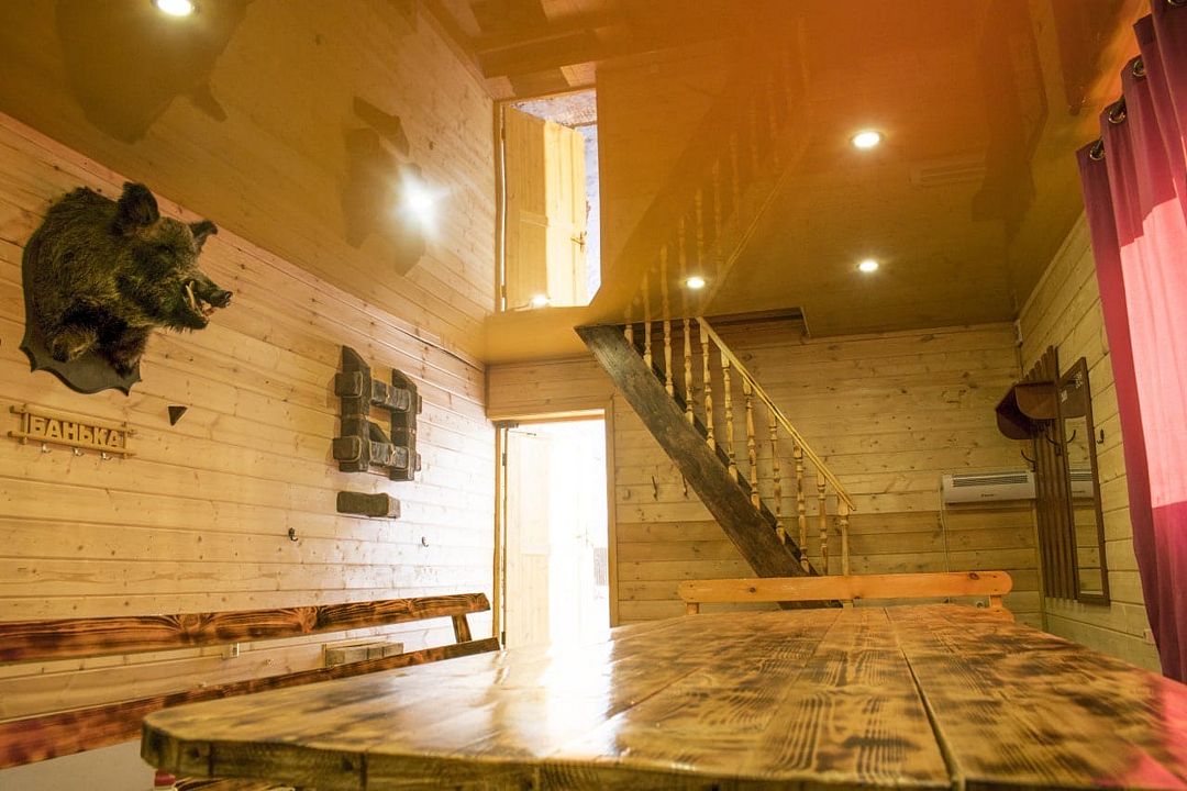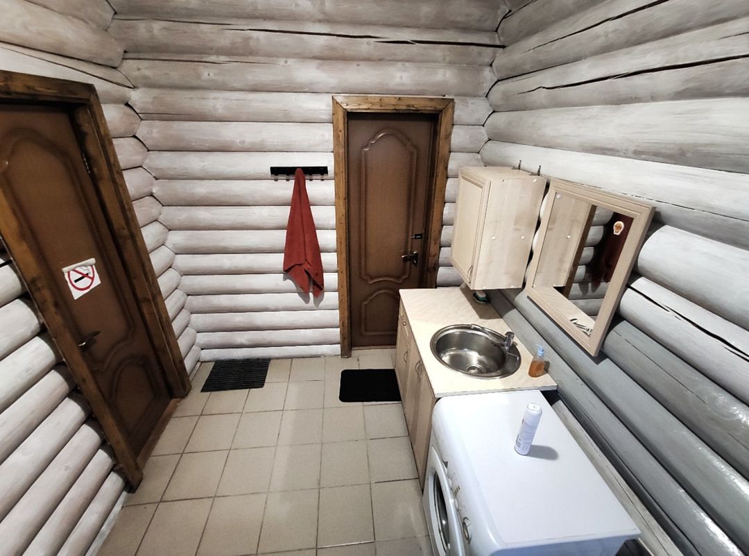 Двухэтажный деревянный сруб. За дополнительную плату можно арендовать баню или банный комплекс (2 часа минимум).