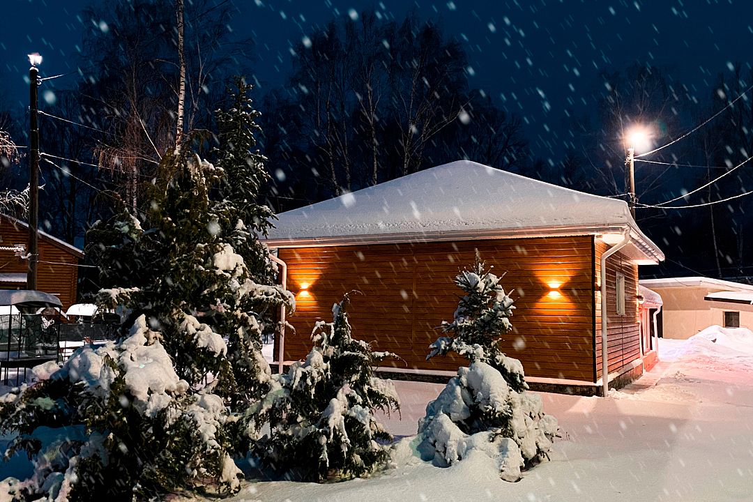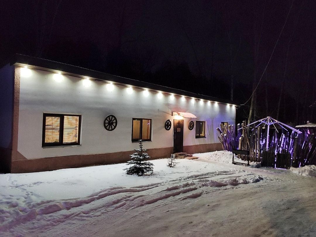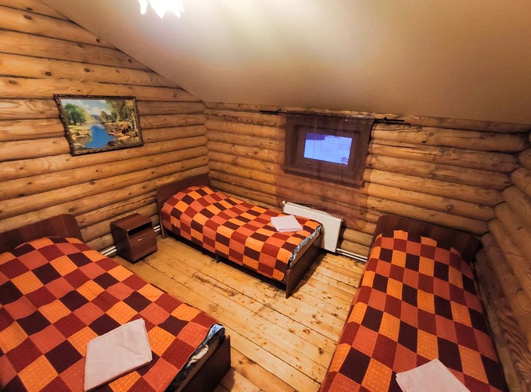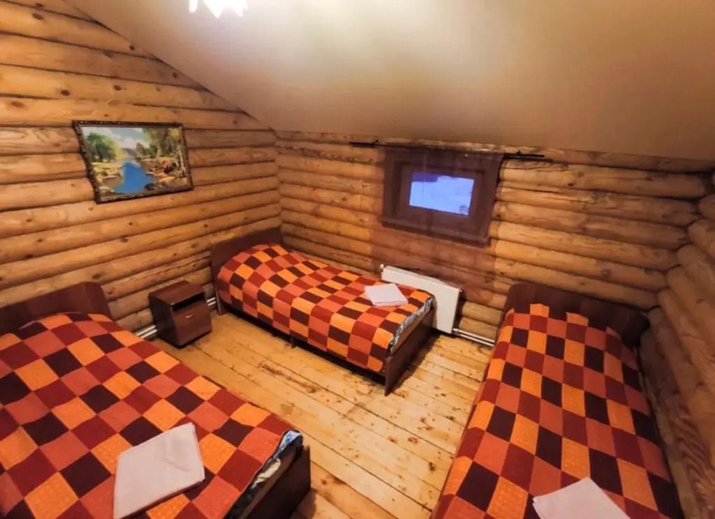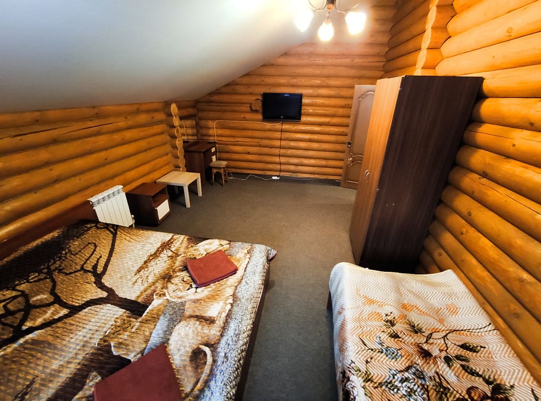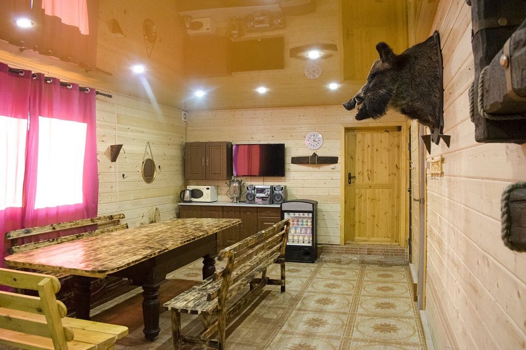 Двухэтажный деревянный сруб. За дополнительную плату можно арендовать баню или банный комплекс (2 часа минимум).