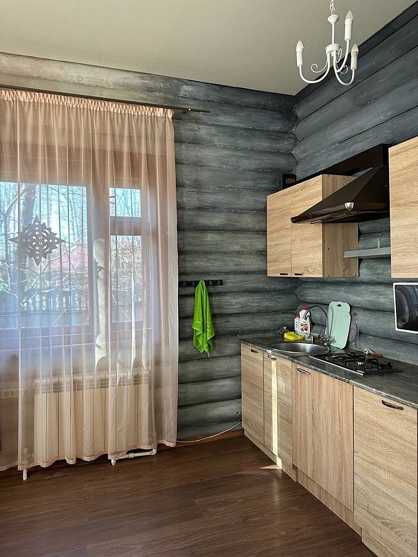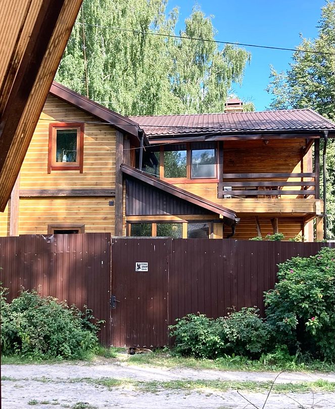 Дом 80 кв.м, вместимостью до 6 человек. Из дома выход в баню, стоимость которой 750 ₽/час (баня на берёзовых дровах), минимум 2 часа.