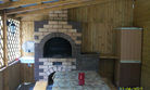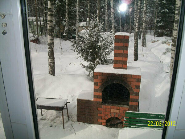 Дом с баней, тулет на улице, рядом с домом мангал, печь.