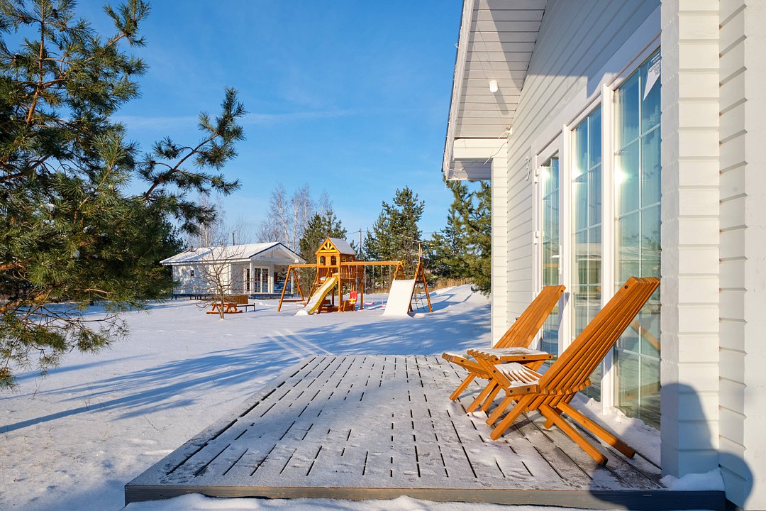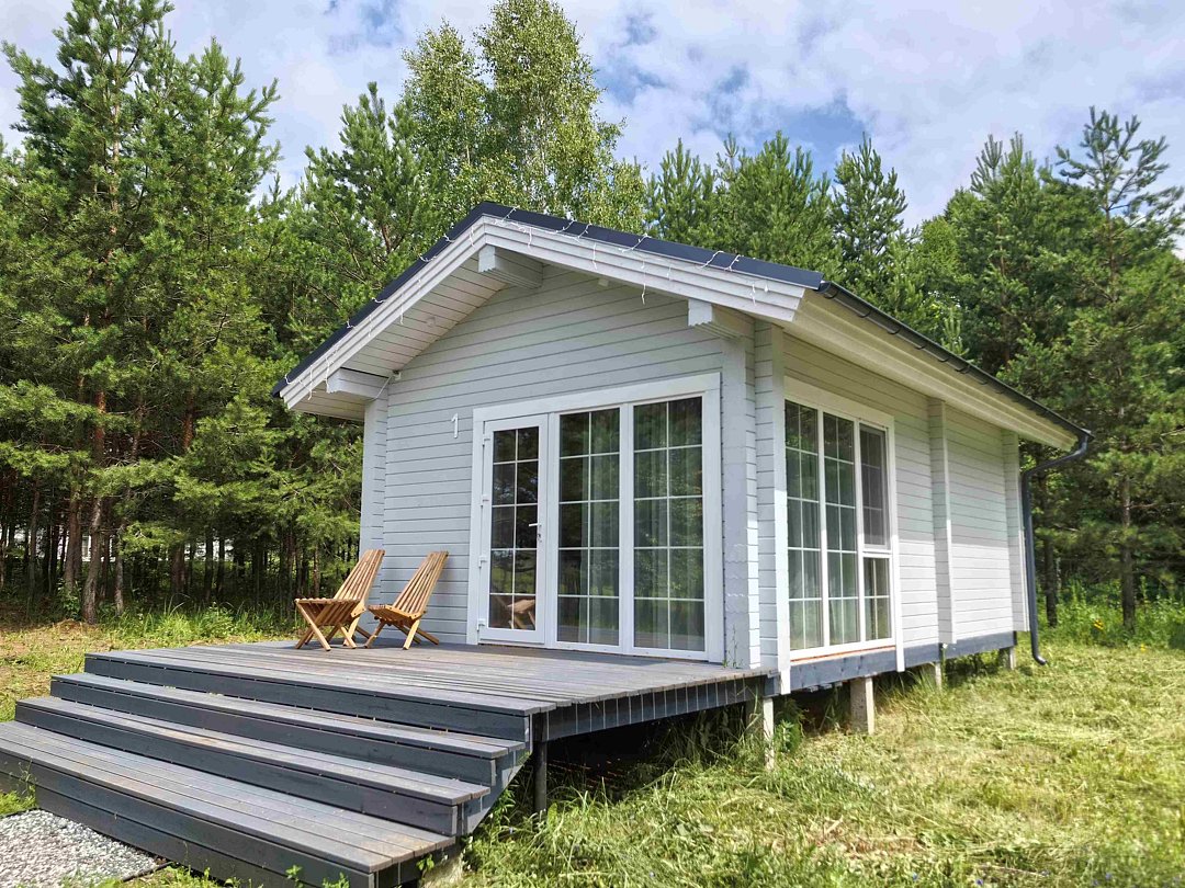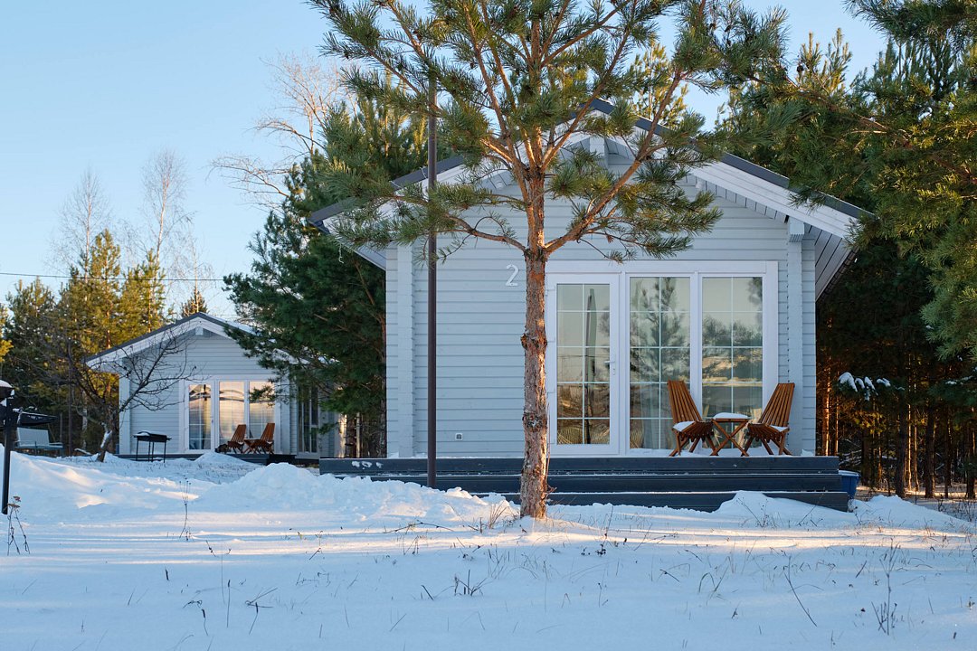 Комфортабельные гостевые дома из клееного бруса и с террасами из лиственницы рассчитаны на размещение до 4х гостей: 2, 2+1, 2+2.