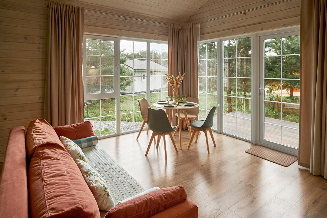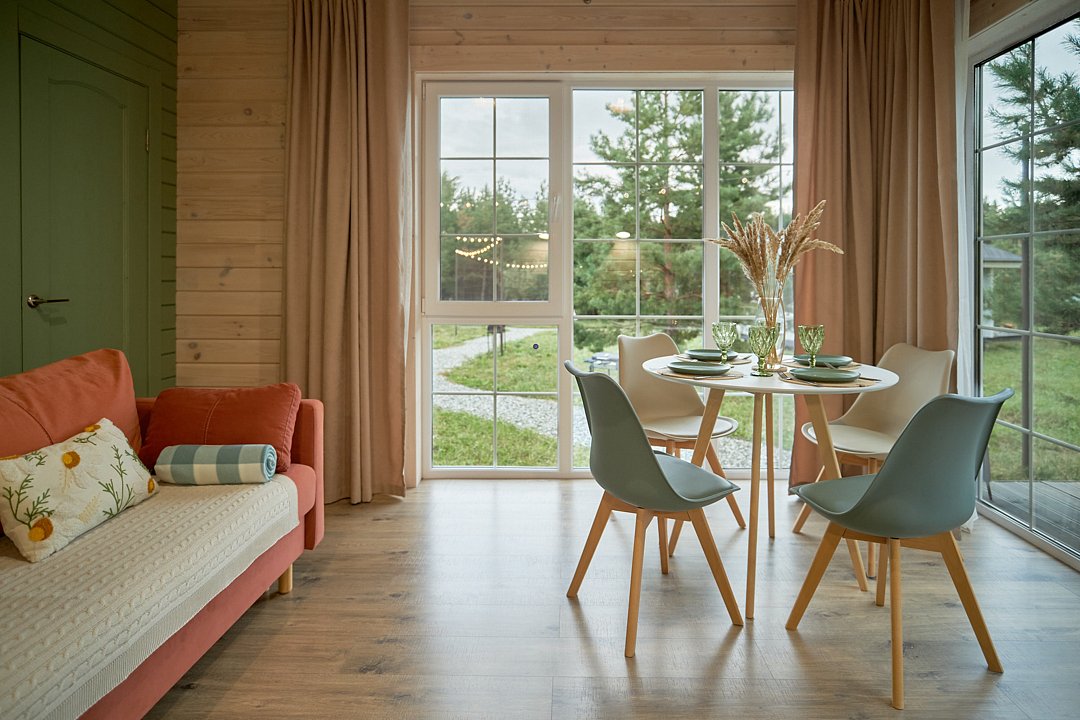 Эко-дома рассчитаны на размещение до 4-х гостей. Спальные места: 2-спальная кровать + диван-кровать.