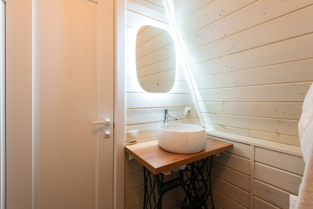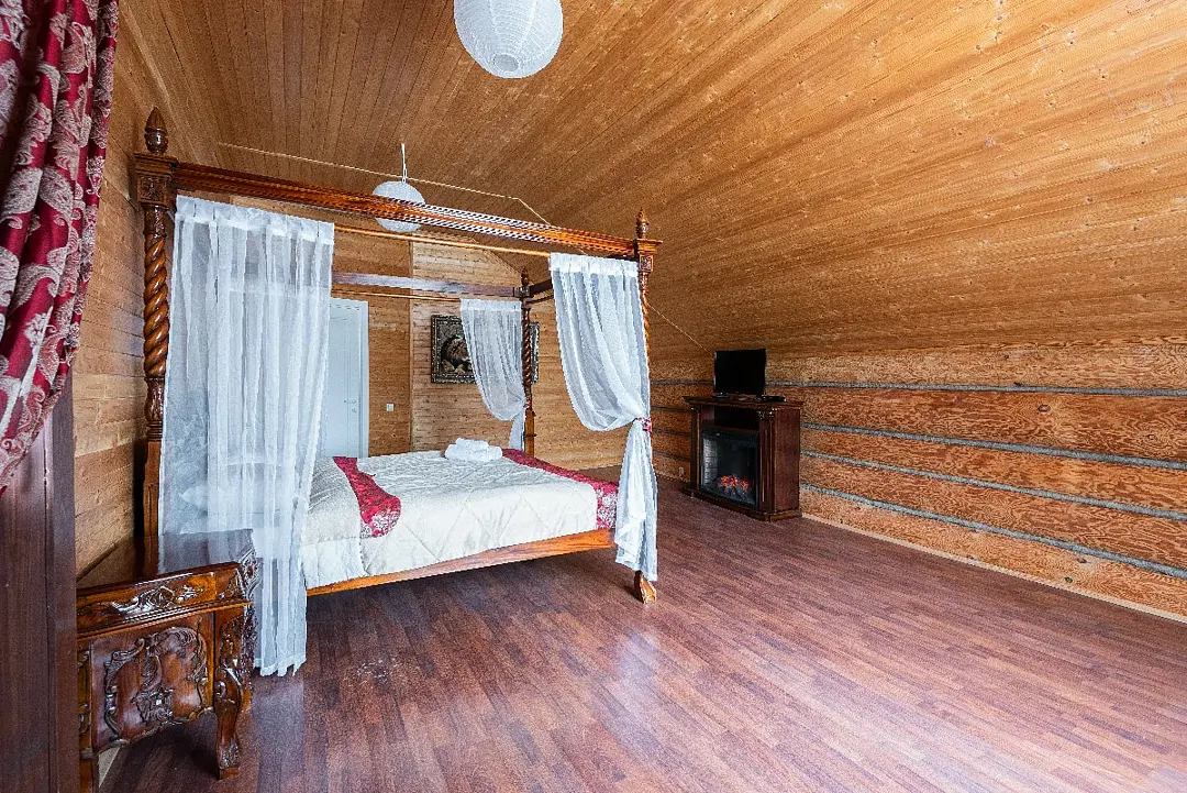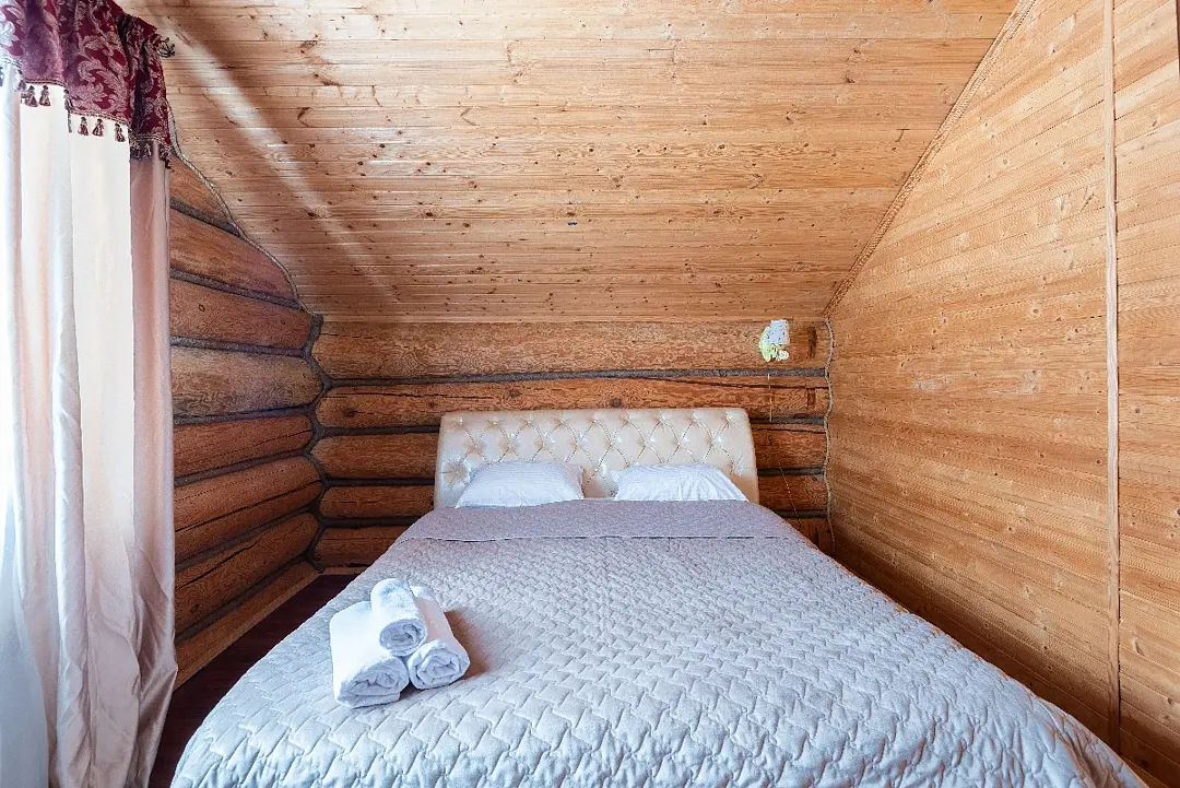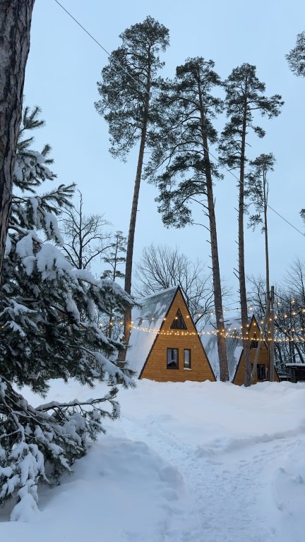 Ваше проживание будет проходить в уютных треугольных домиках или просторном гостевом доме — выбор за вами! После активного дня вас ждет расслабление в настоящей русской бане или в подогреваемом чане под открытым небом.