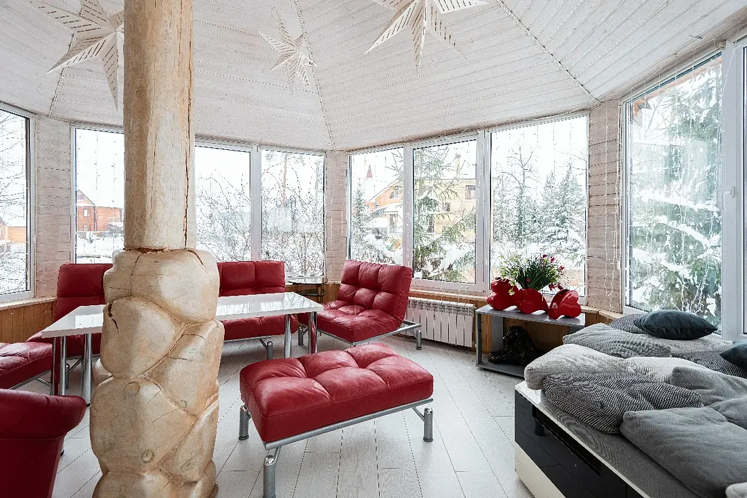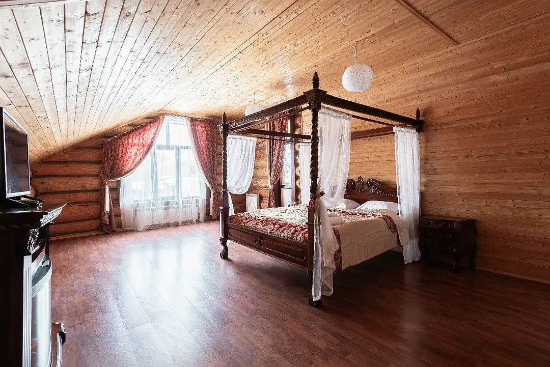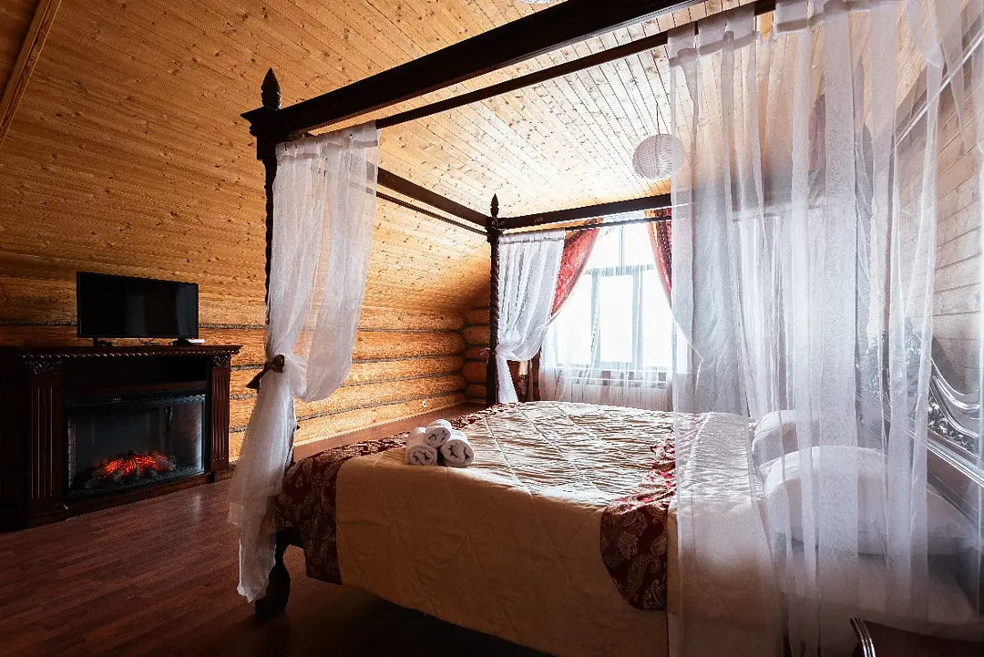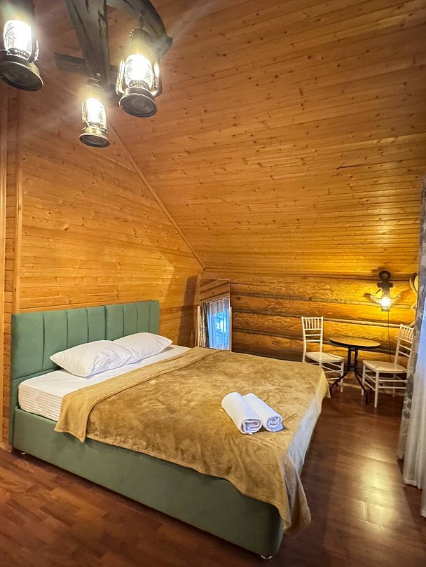 Проживание будет проходить в уютных треугольных домиках или просторном гостевом доме — выбор за гостями! После активного дня ждет расслабление в настоящей русской бане или в подогреваемом чане под открытым небом.