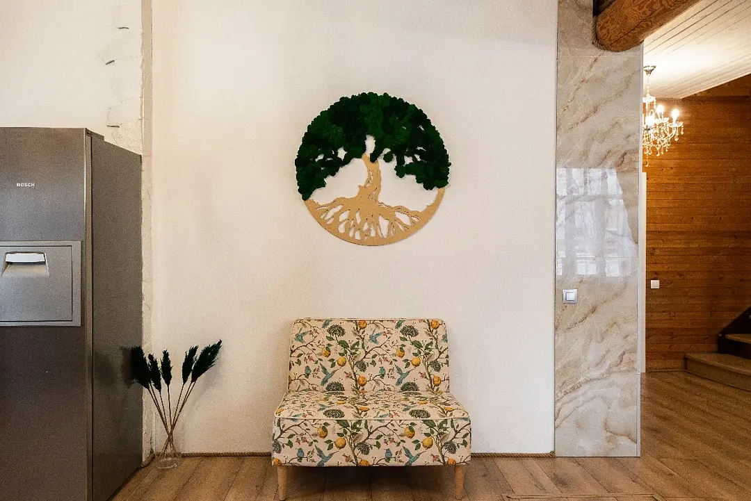 В вашем распоряжении полностью оборудованная кухня со всей необходимой посудой и комфортная ванная комната. Возле дома вас ждет уютная мангальная зона — уголь, решетка и розжиг уже приготовлены для вашего пикника.
