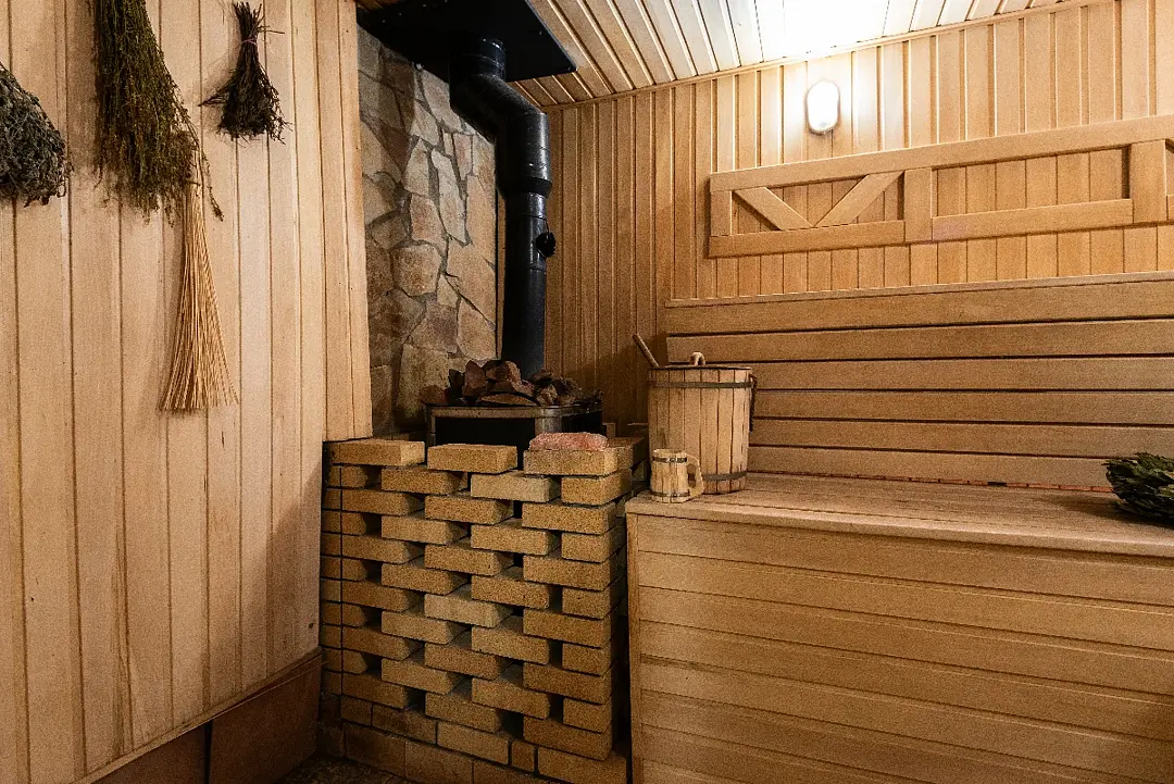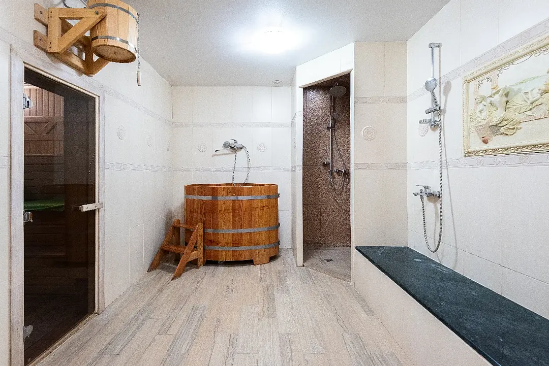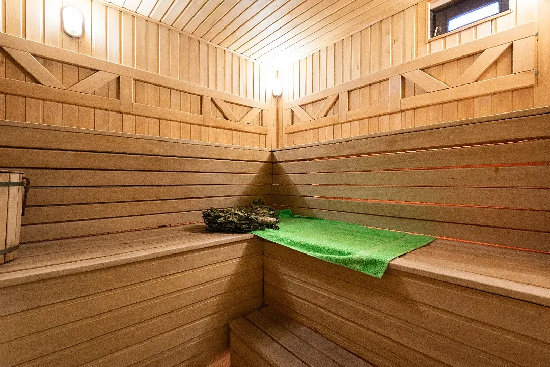 - вместительная парная с ароматными травами;