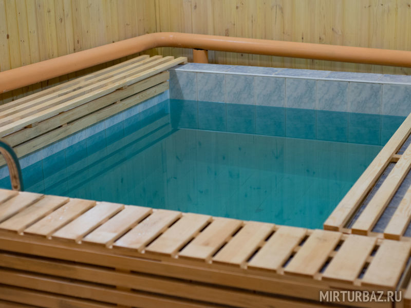 На первом этаже дома расположены баня с бассейном душем, санузлом и комната отдыха на 11-12 человек.