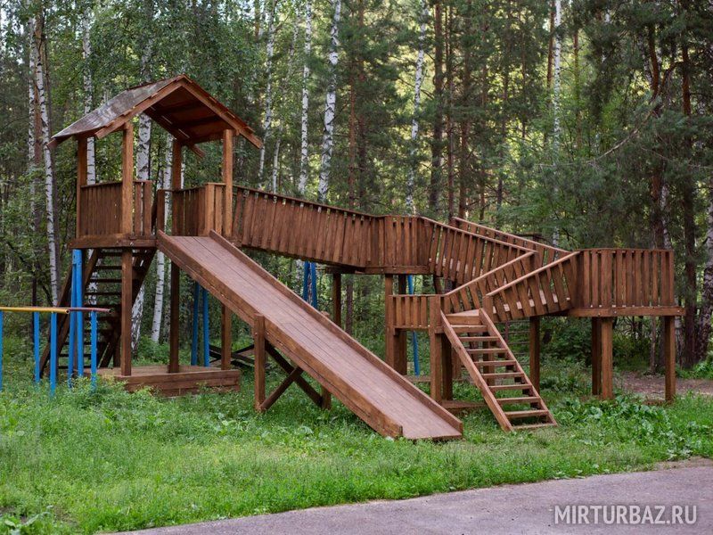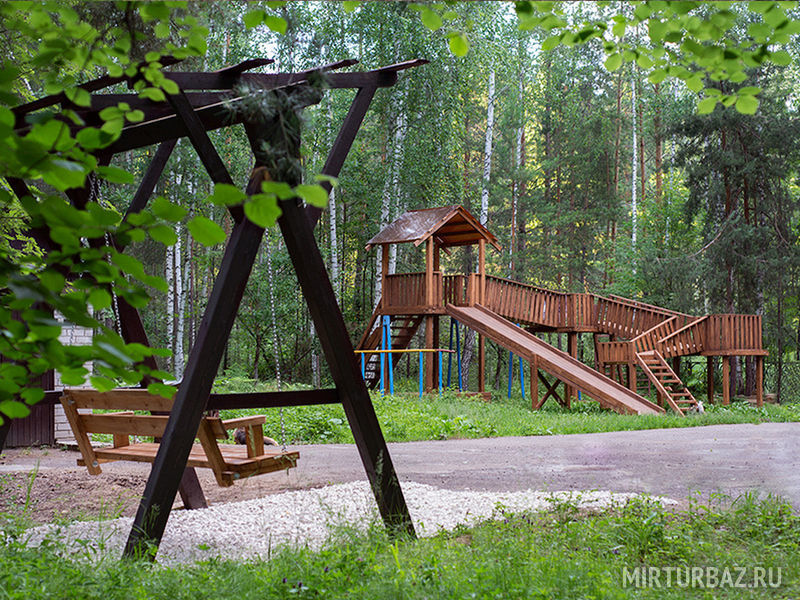 Для веселого времяпрепровождения детей на базе отдыха «Кристалл» имеется оборудованная игровая площадка с песочницей, горкой и мини-городком. Детям очень интересно "осваивать" эту конструкцию.