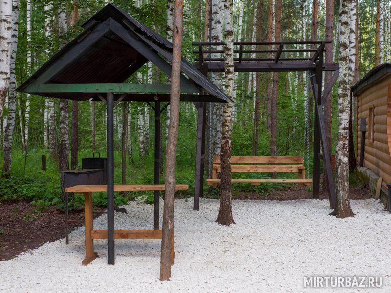 Для тех, кто любит самостоятельно готовить пищу на углях — зона барбекю с мангалом, находящимся под небольшим навесом, небольшим столом и лавочкой-качелями, чтобы Вы могли отдохнуть, пока рядом готовиться шашлык.
