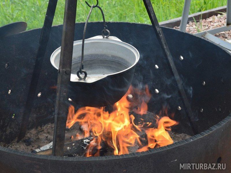 Питание самостоятельное. Возле домов установлены мангалы для жарки шашлыков и барбекю. В прокате можно приобрести казан, шампуры, гриль-решетки. Продукты питания и напитки гости привозят с собой.