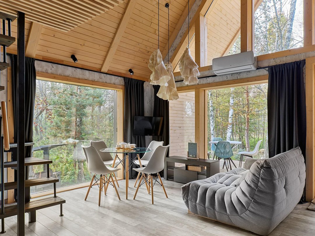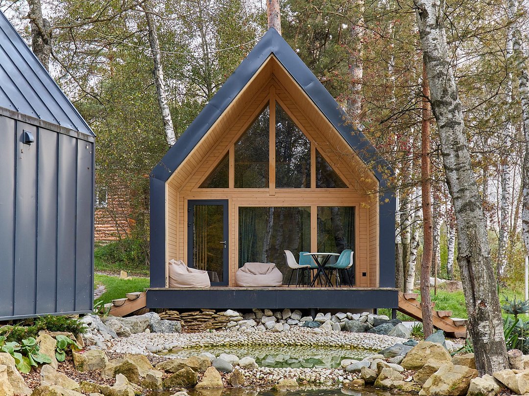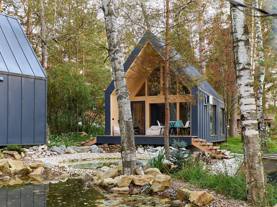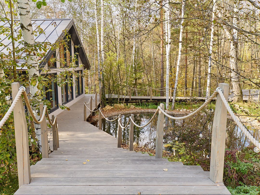 Хозяйка пространства вручную создает детали интерьера домов, вкладывая теплоту в каждый из них. Домики окутаны смешанным лесом и тремя озерцами с родниковой водой. Из окна вы увидите озера и сможете попробовать самый вкусный домашний мед.