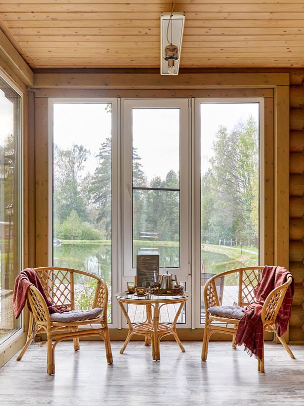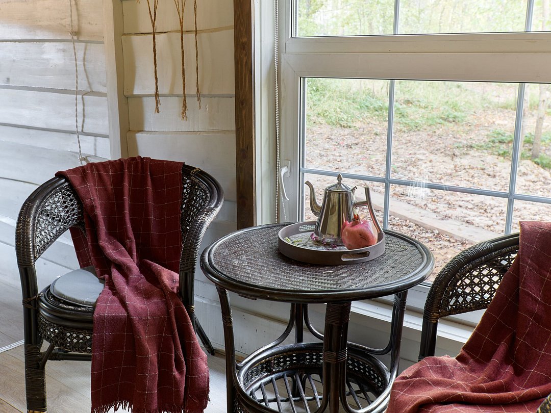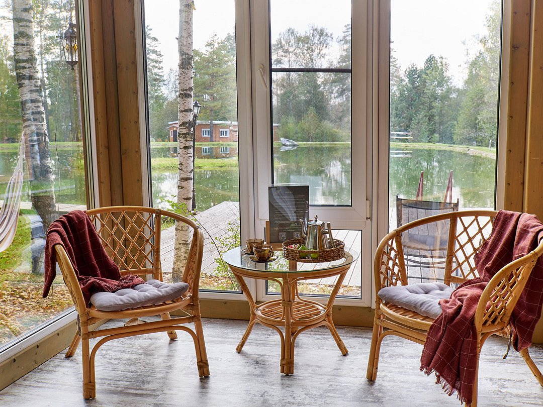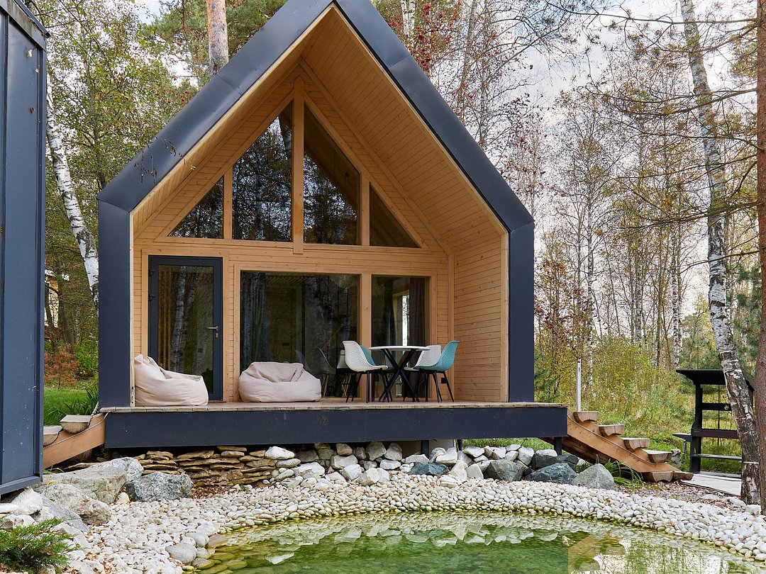 Хозяйка пространства вручную создает детали интерьера домов, вкладывая теплоту в каждый из них. Домики окутаны смешанным лесом и тремя озерцами с родниковой водой. Из окна вы увидите озера и сможете попробовать самый вкусный домашний мед.